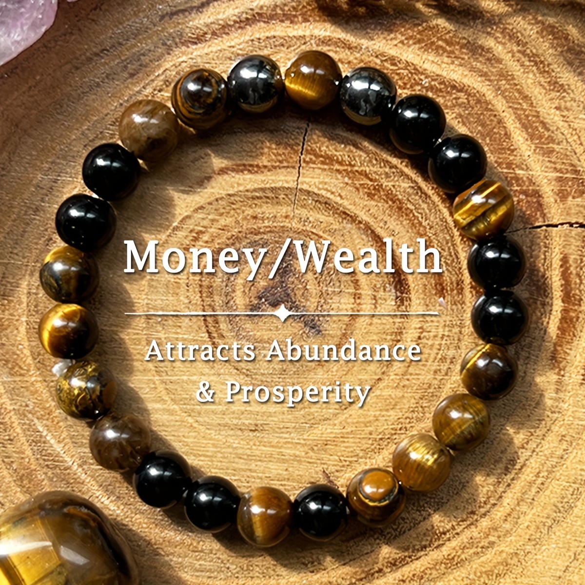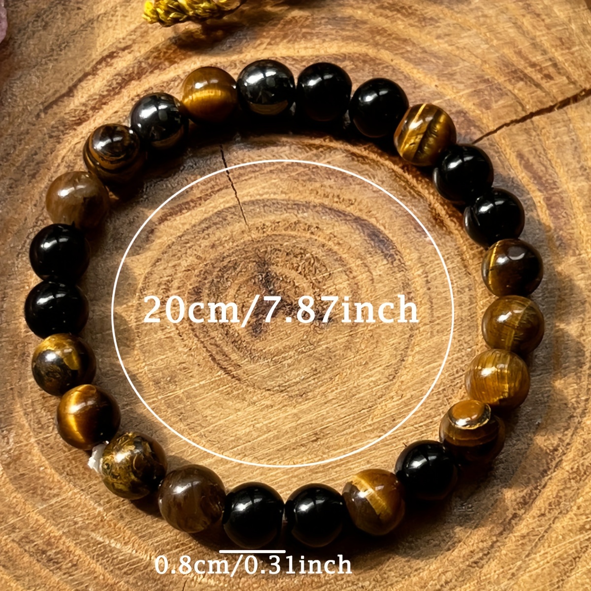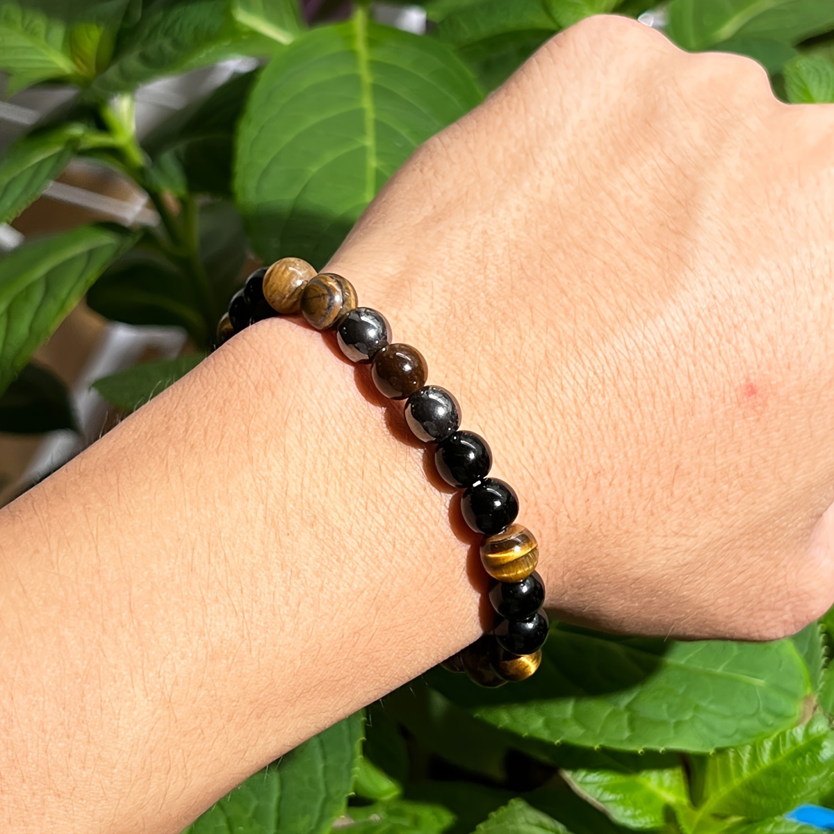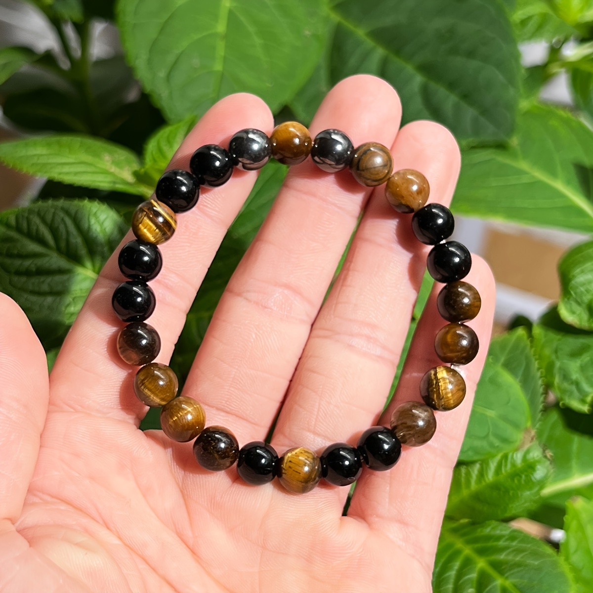 8mm Wealth Bracelet: Black Gallstone & Tiger