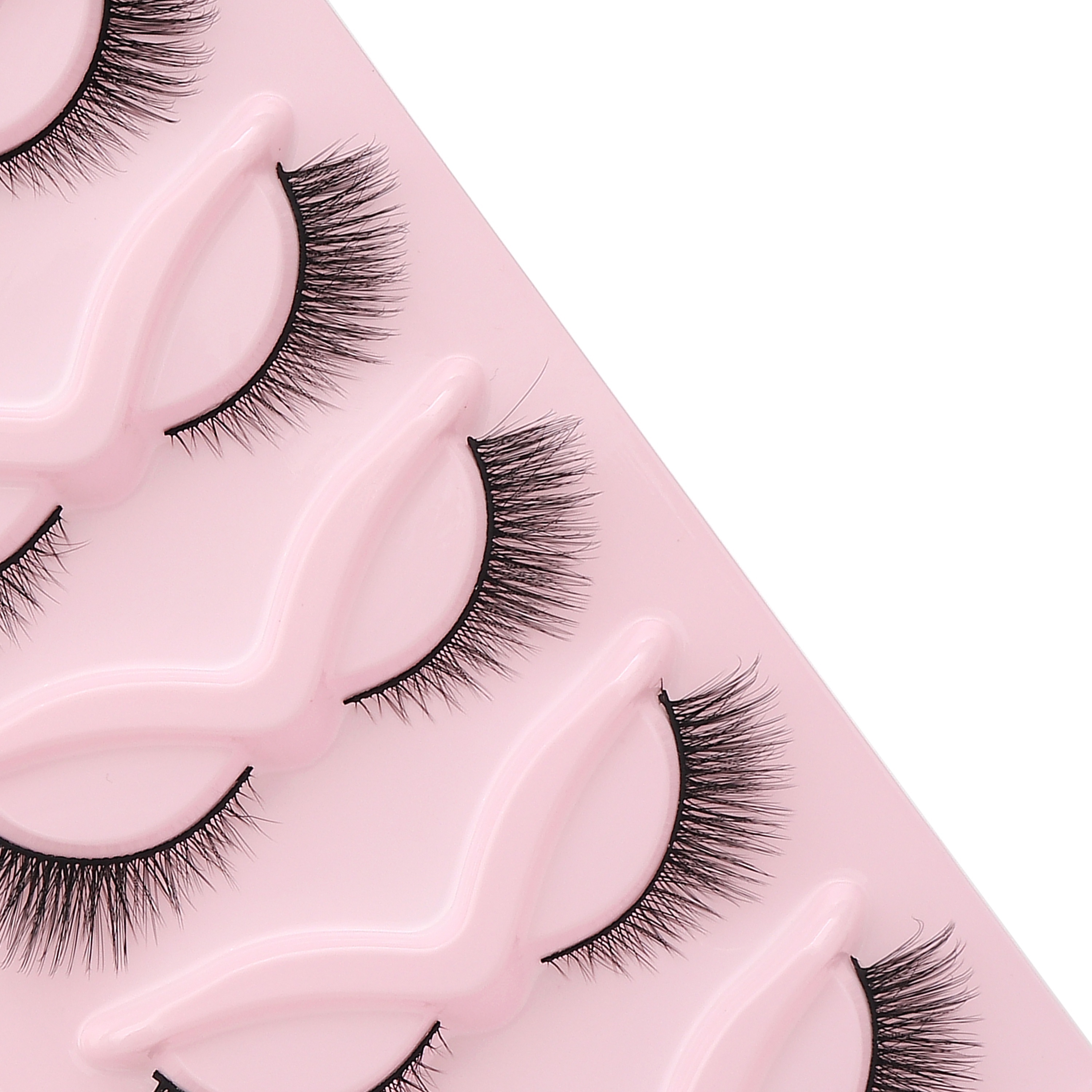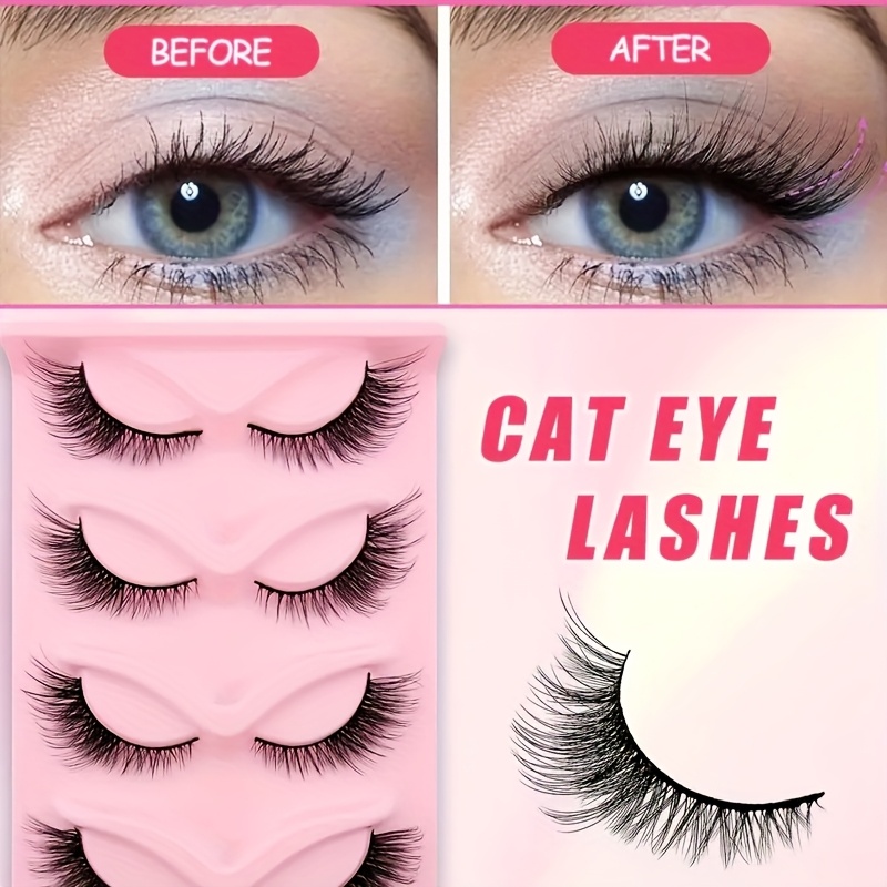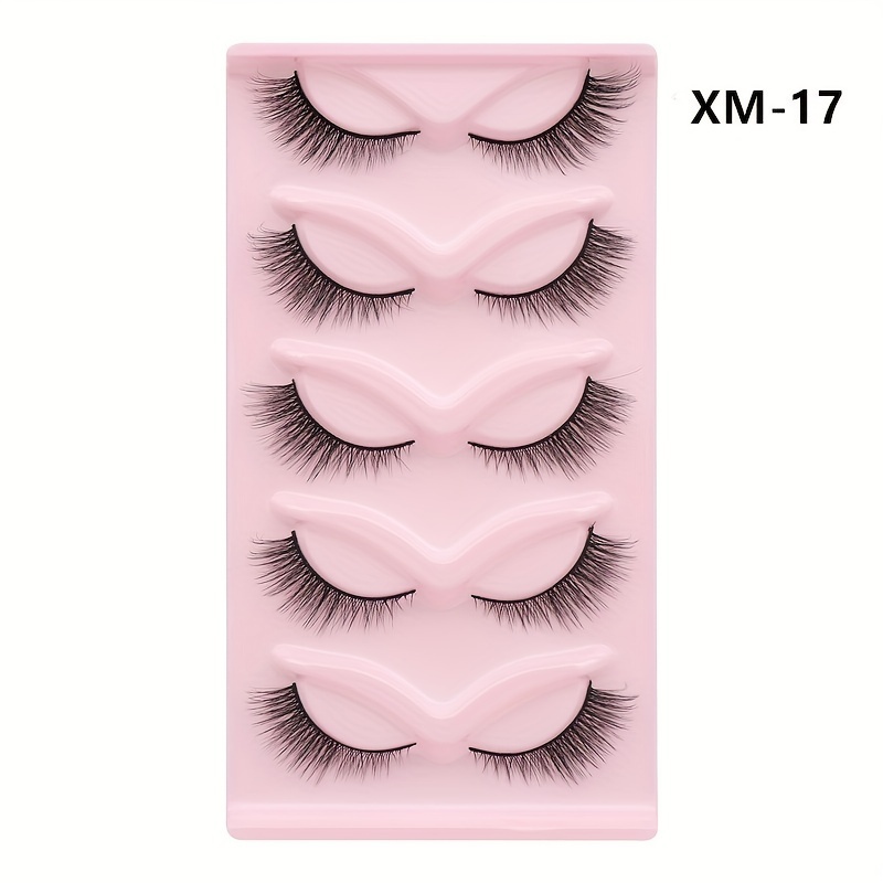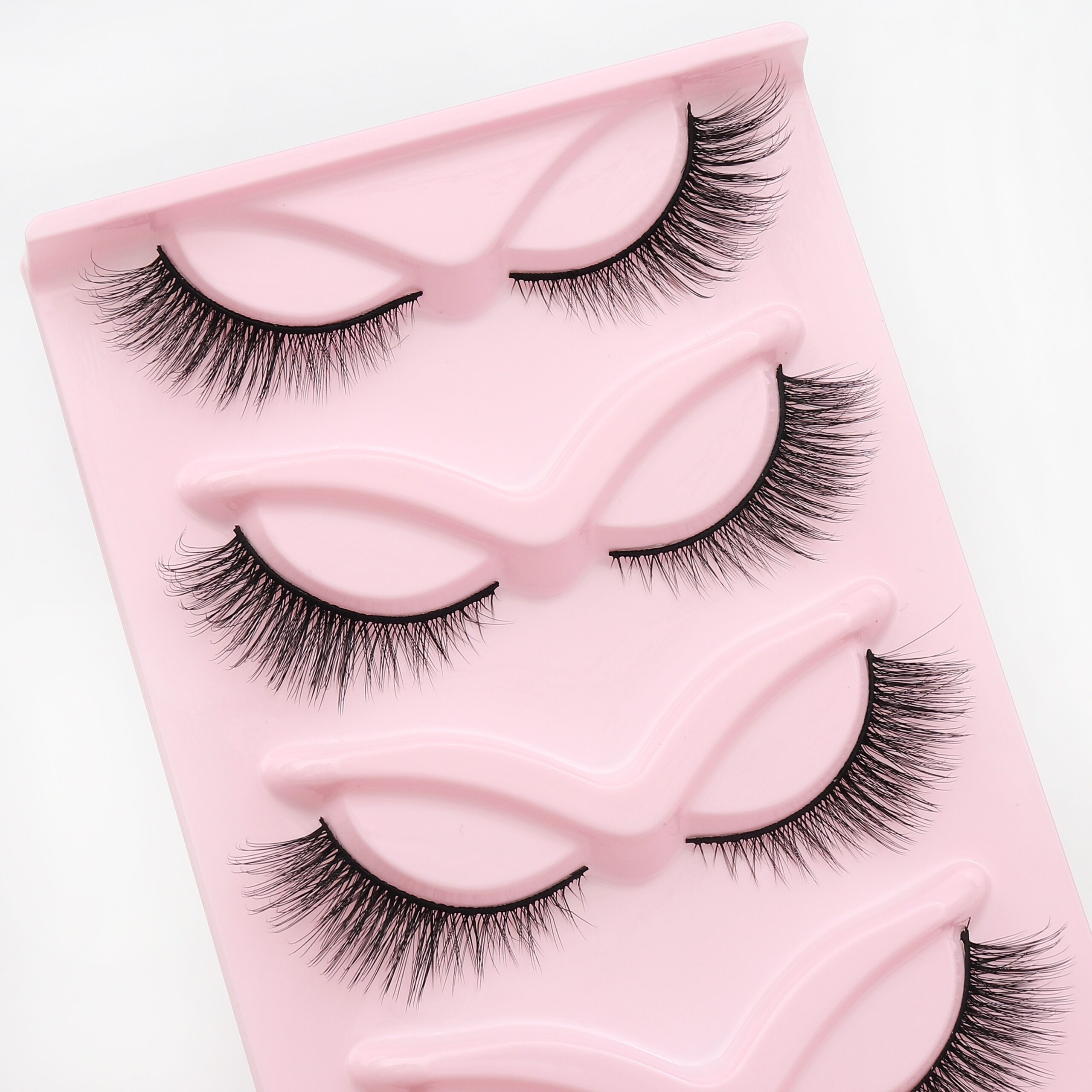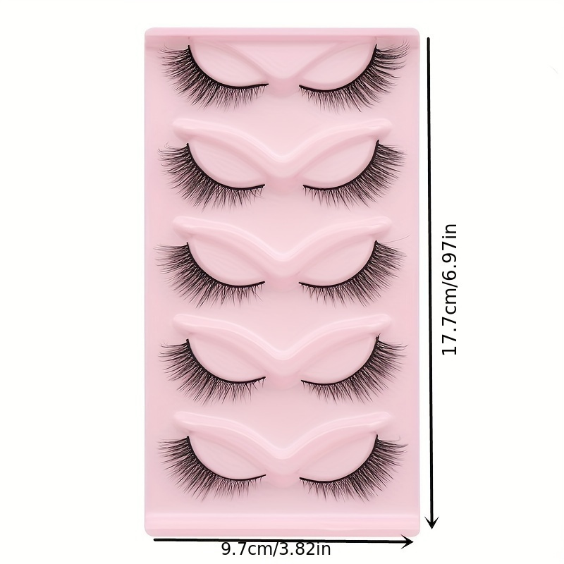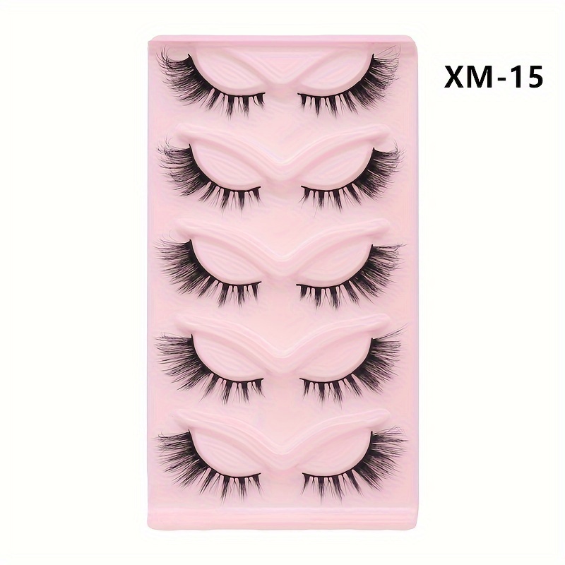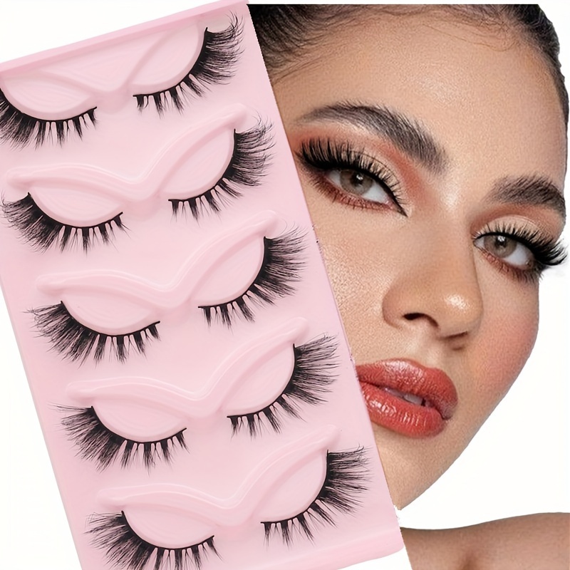 A Set of 5 Pairs of -Eye Natural False Eyelashes, Cat-Eye 3D Stereoscopic Imitation Mink, with Elongated Ends.