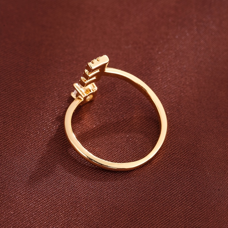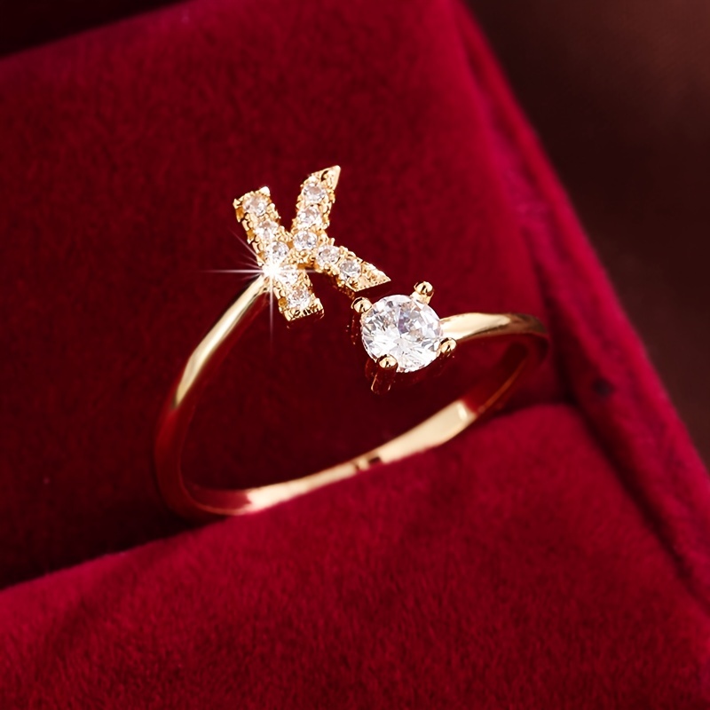 Adjustable Copper Ring With Four-claw Round Zirconia, Featuring The 26 English Letters Of Fashion Trend.