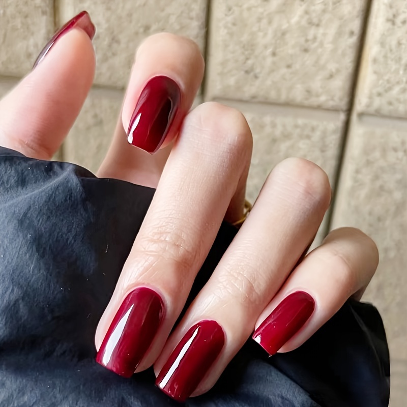 Burgundy Gloss False Nails Nails Medium Glossy Acrylic Full Cover Simple Press On Nails Kit