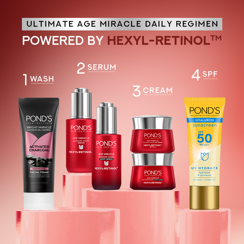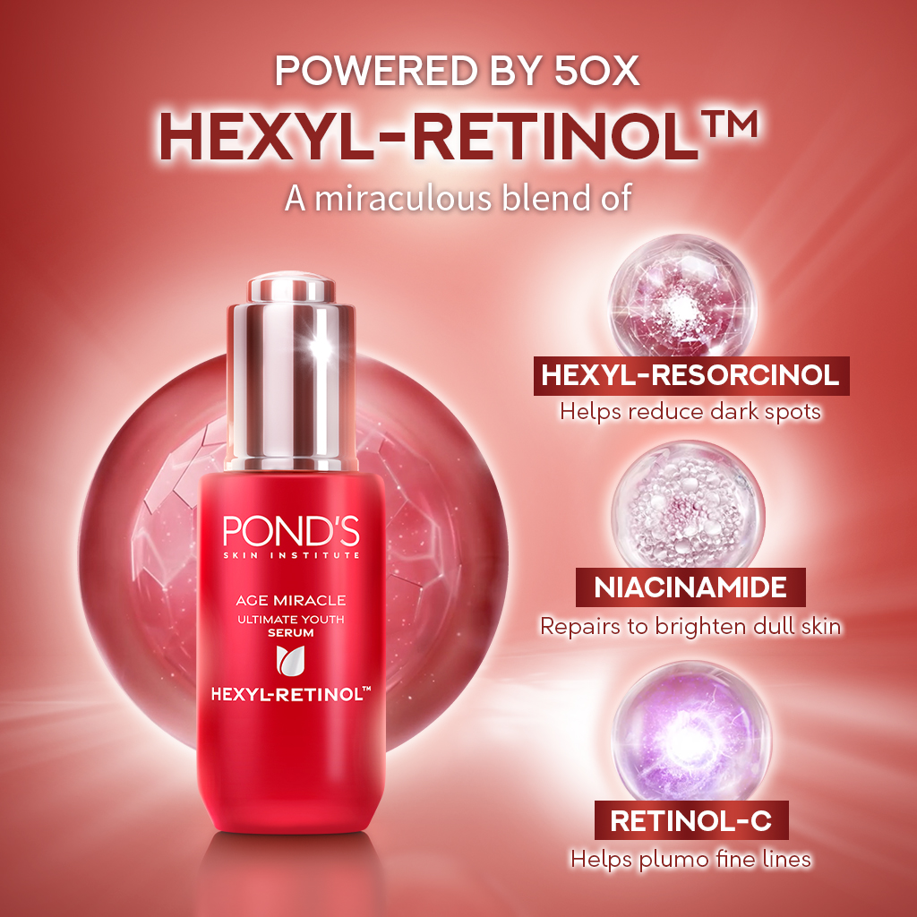 - NEW POND’S AGE MIRACLE WITH HEXYL-RETINOLTM, has 2x retinol that boosts skin repair to give you ultimately youthful-looking skin from 3 days.