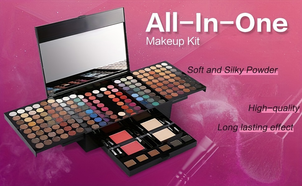 High pigment and, super soft shadows easily blendable. long-lasting, natural,. With its versatile design and array of color options makes it an ideal gift for both Makeup lovers and beauty beginners. What’s in the Box: 180 Colors shimmer matte eyeshadows 2 Colors compact powder 2 Colors blusher powder 6 Colors eyebrow powder 6 mini applicators + 1 eyeliner pen A Full Size mirror