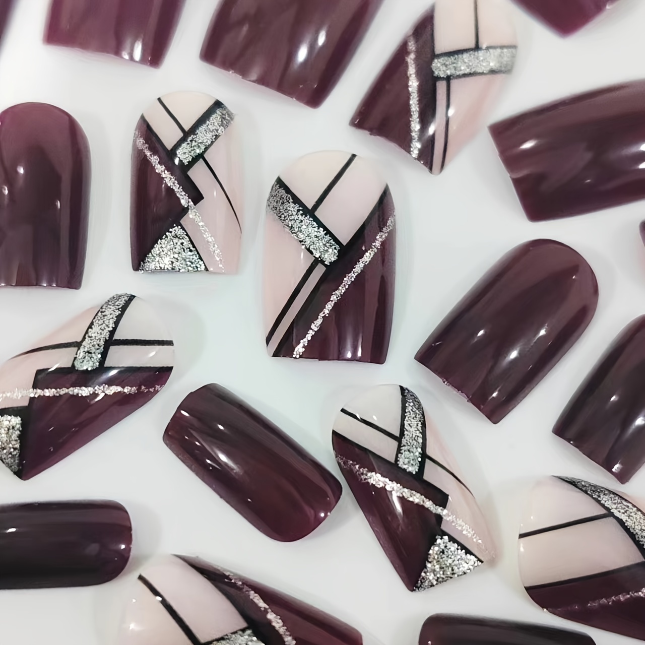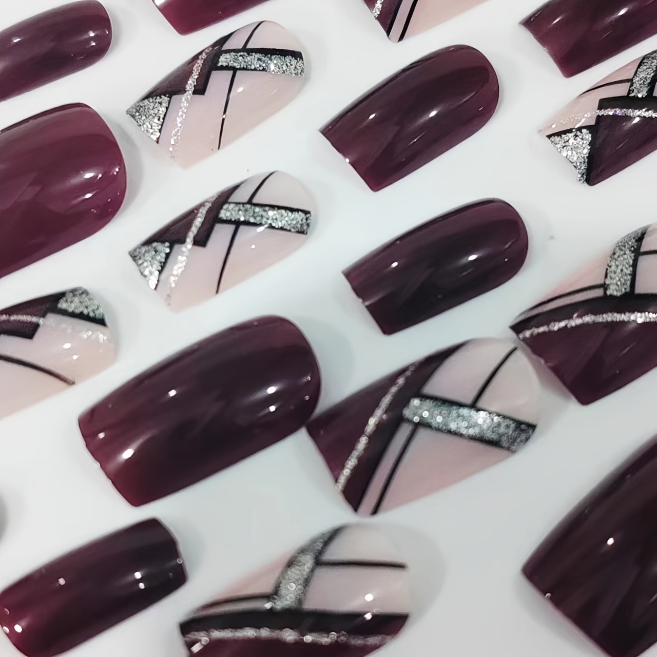Charming 24pcs Short Square Nail Plates Wearable Nails Press-on Nails with Nail Set