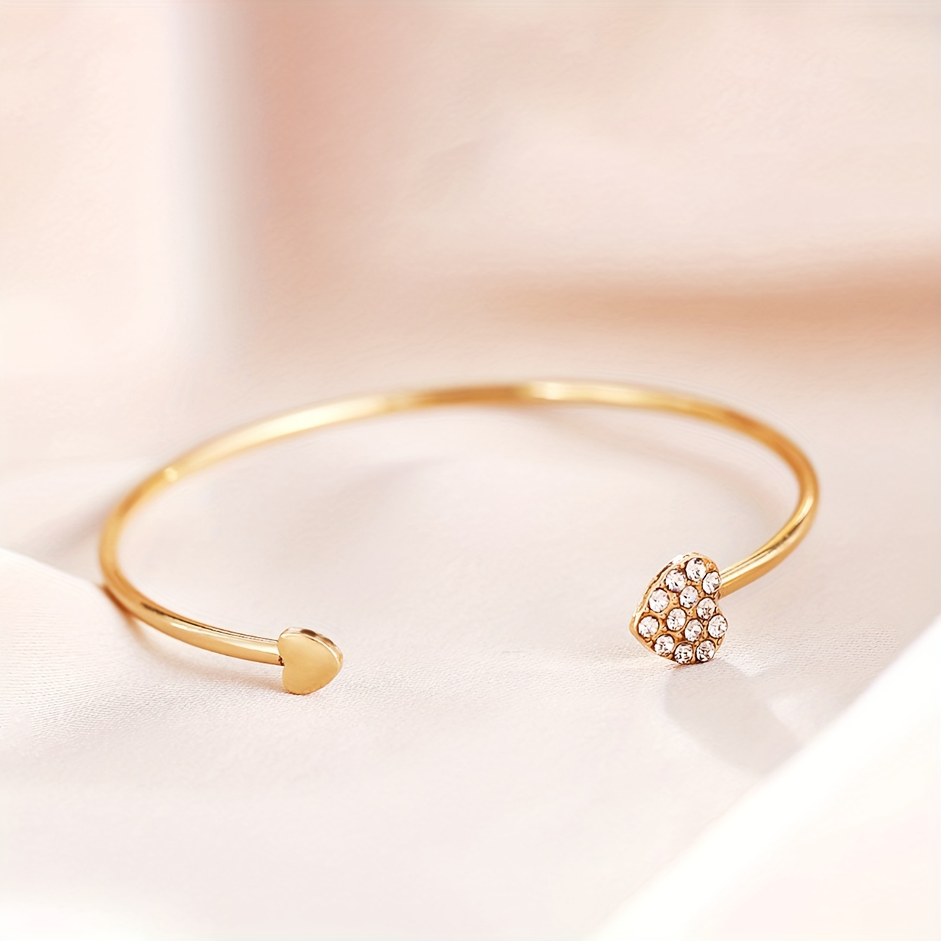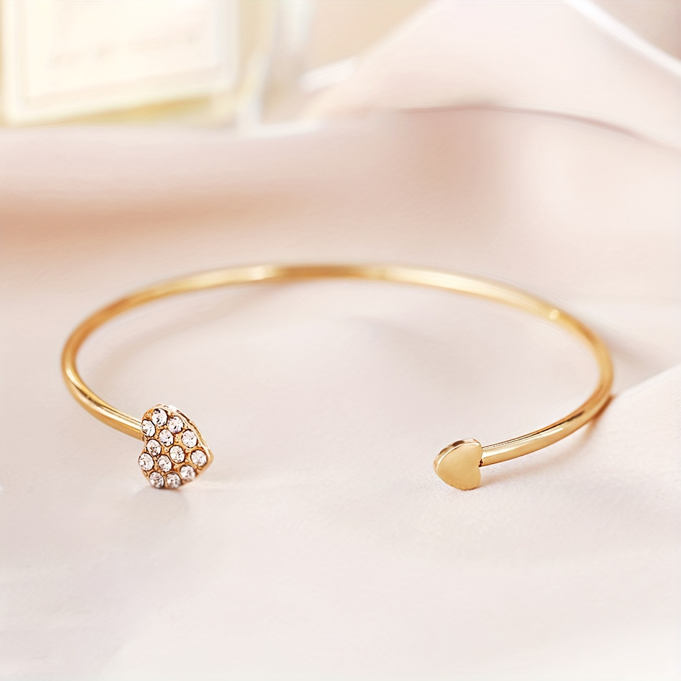 Chic Cuff Bangle Trendy Heart Design Paved Shining Rhinestone Symbol Of Fashion And Sweetness Match Daily Outfits Party Decor
