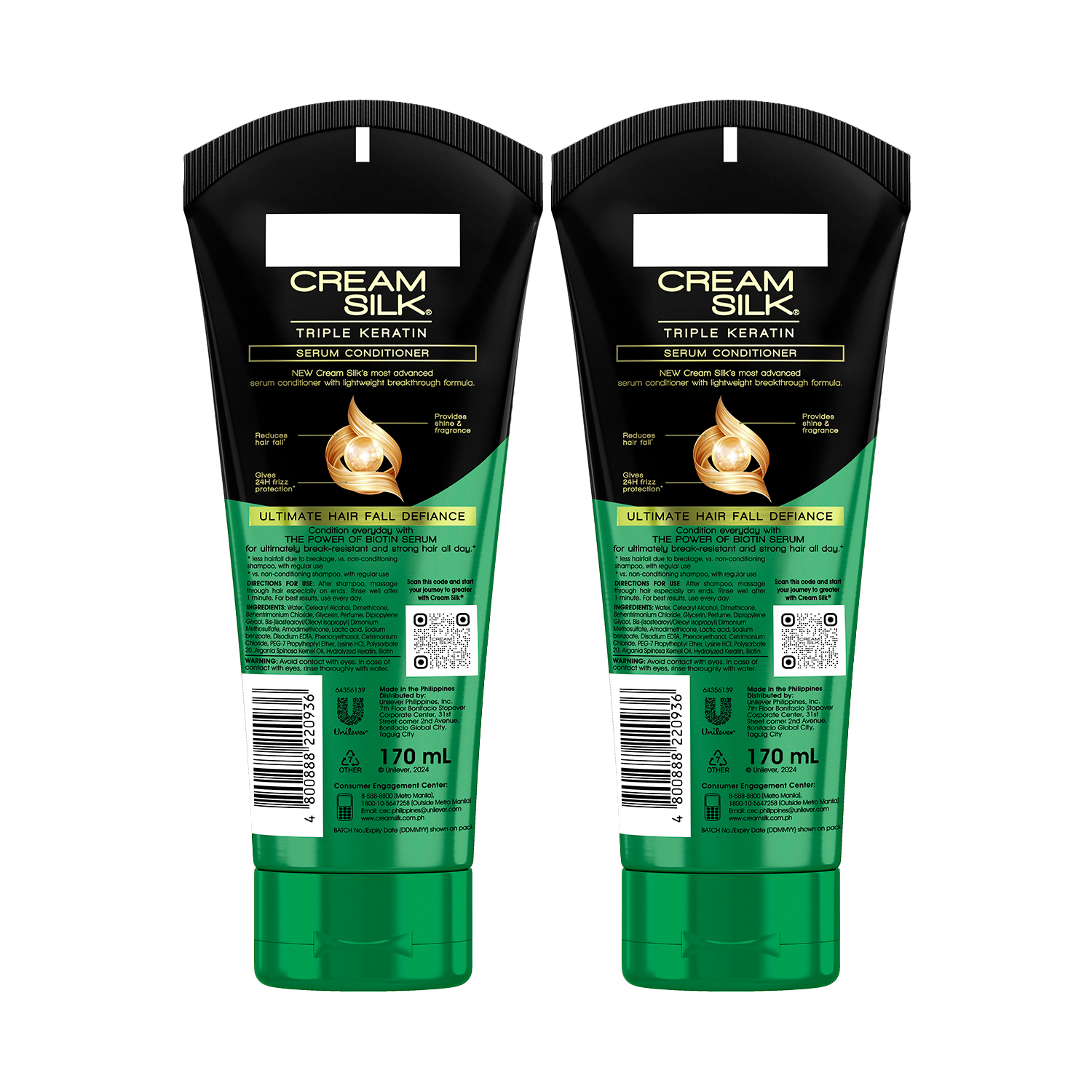 • [BUNDLE OF 2] Cream Silk Triple Keratin Serum Conditioner Ultimate Hair Fall Defiance 170ML