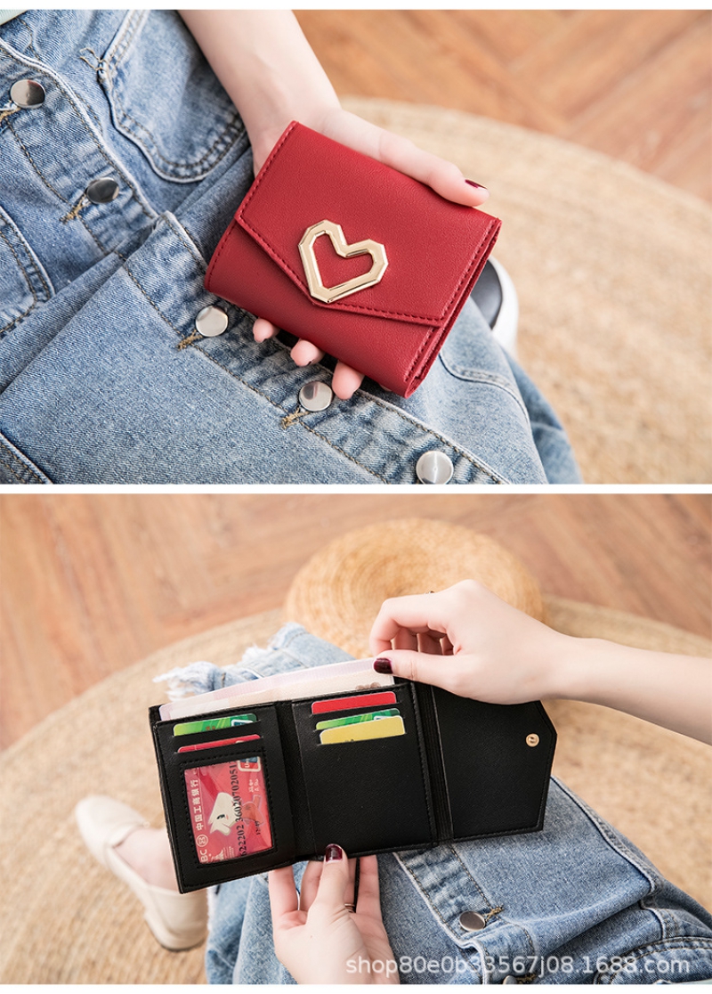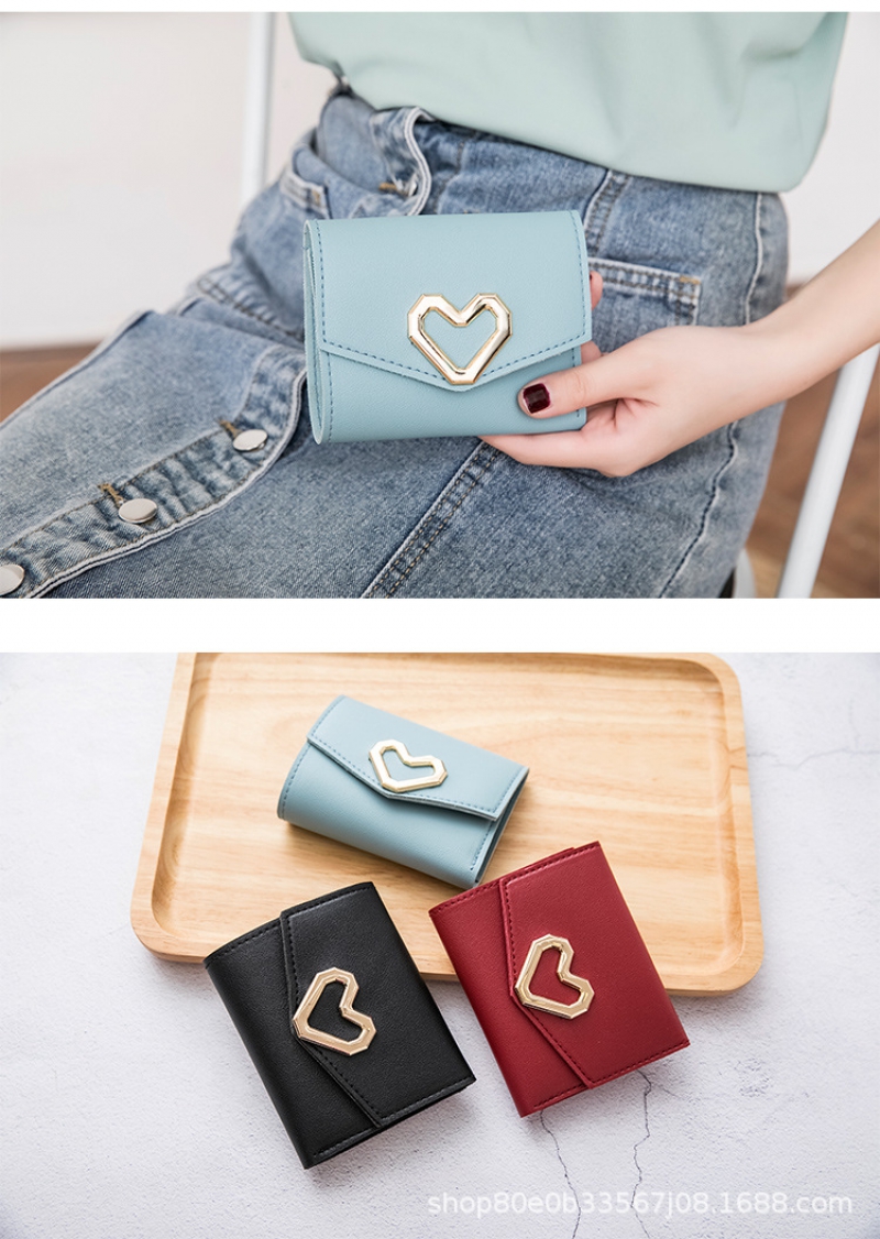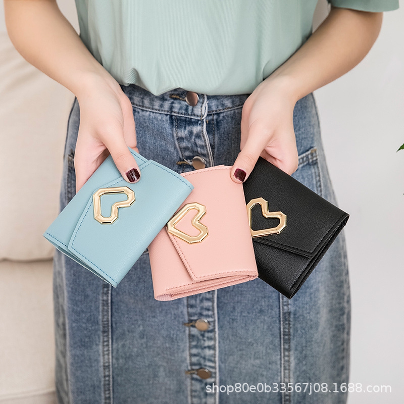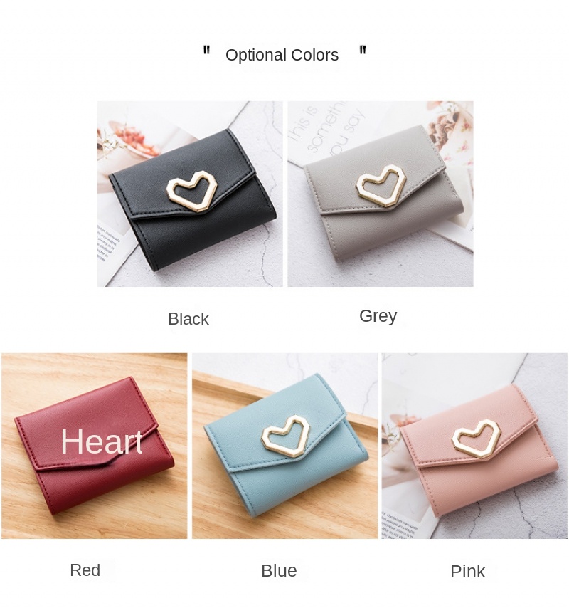 Cute Women’S Wallet, Triple Folding Women’S Coin Purse, Card Holder, Korean Fashion Clutch, Heart Shaped Wallet For Girls