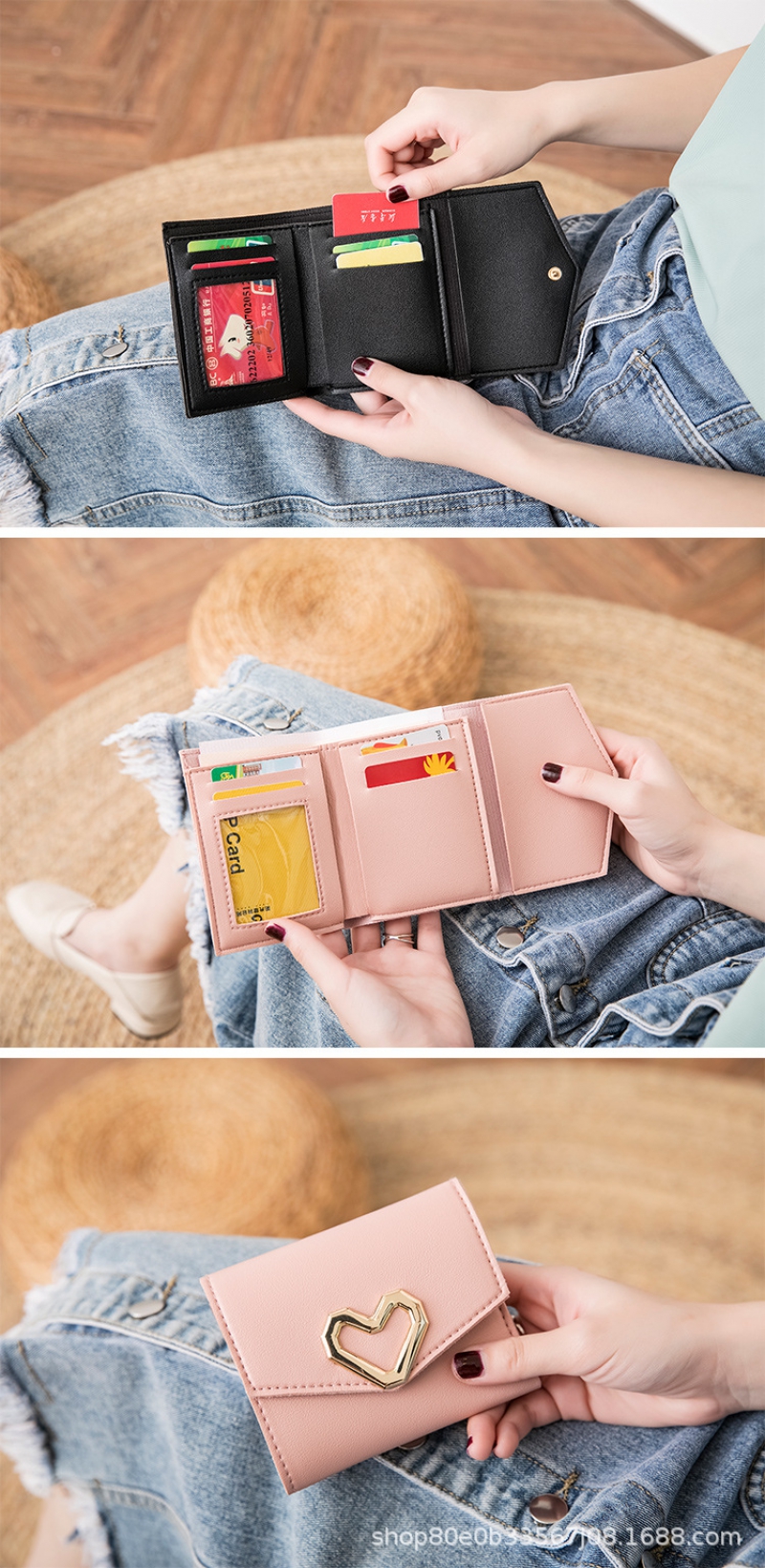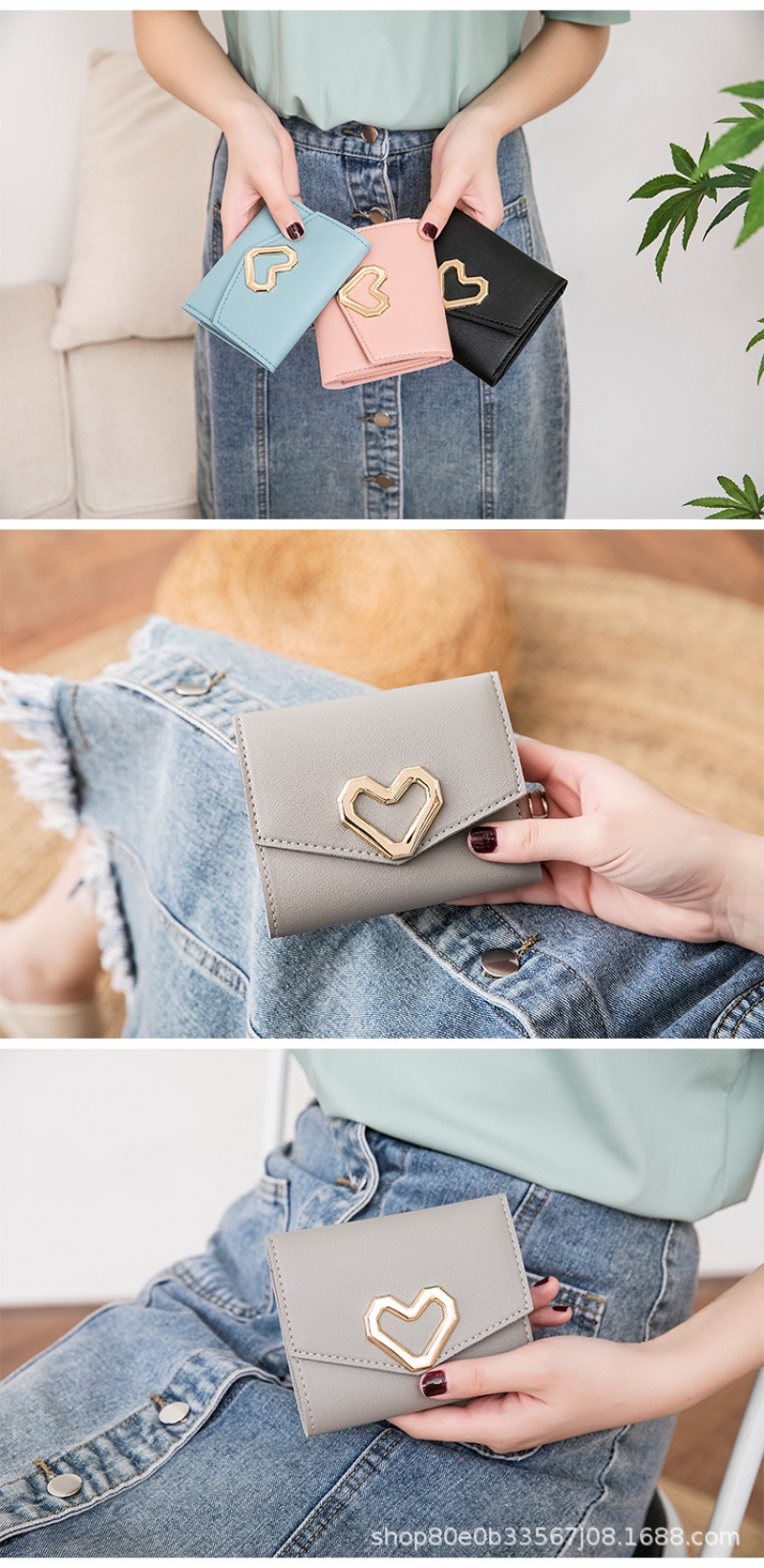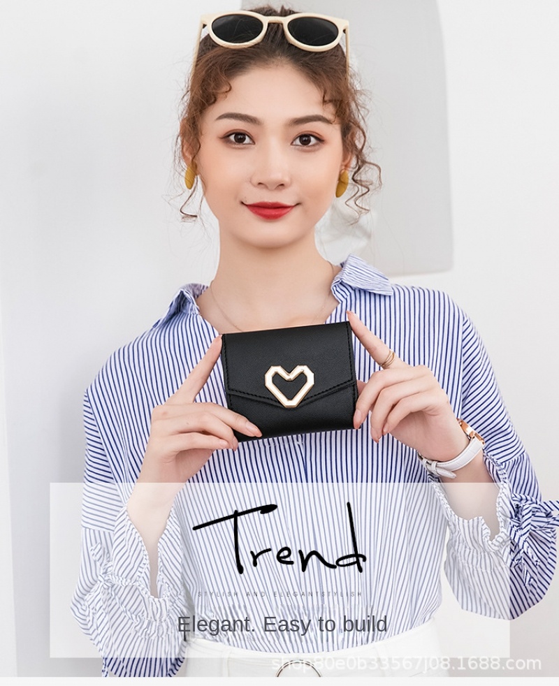 Cute Women’S Wallet, Triple Folding Women’S Coin Purse, Card Holder, Korean Fashion Clutch, Heart Shaped Wallet For Girls