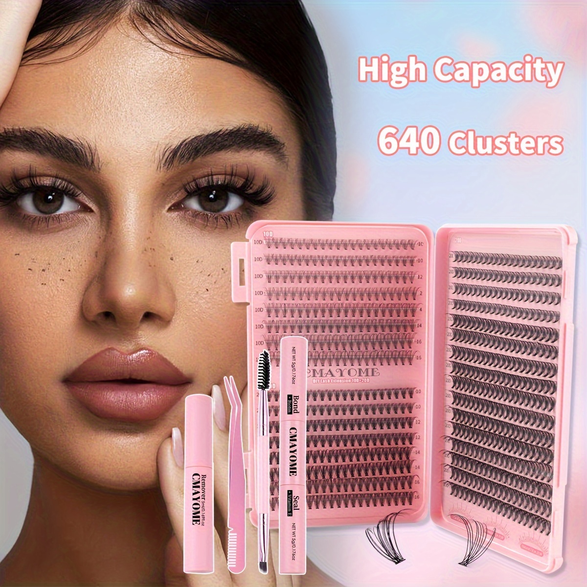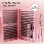 DIY Eyelash Extension Kit, 640 Pcs 10D-20D Cluster Lashes, D Curl 0.05mm Thickness, Mixed Length 10-18mm, Russian DD, Doll & Anime Style, Self-Adhesive & Reusable Extensions with Dual-Ended Bonding & Sealing Tools, Ideal for Cosplay & Natur