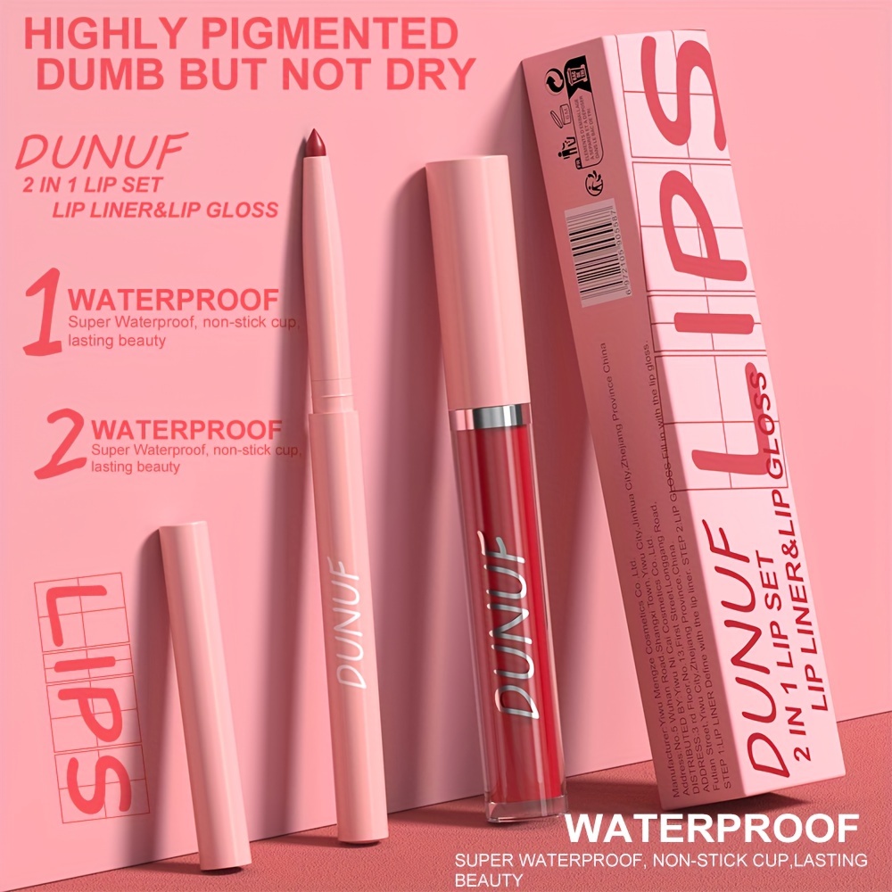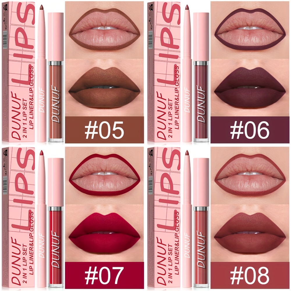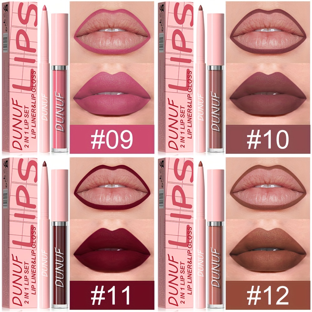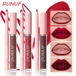 DUNUF Matte Lip Gloss and Liner Set – 2 in 1 Waterproof, Sweat-Resistant, Long Lasting Liquid Lipstick, Full Coverage Matte Finish, Universal Skin Compatibility, Multi-Tone, Lightweight – Ideal Gift