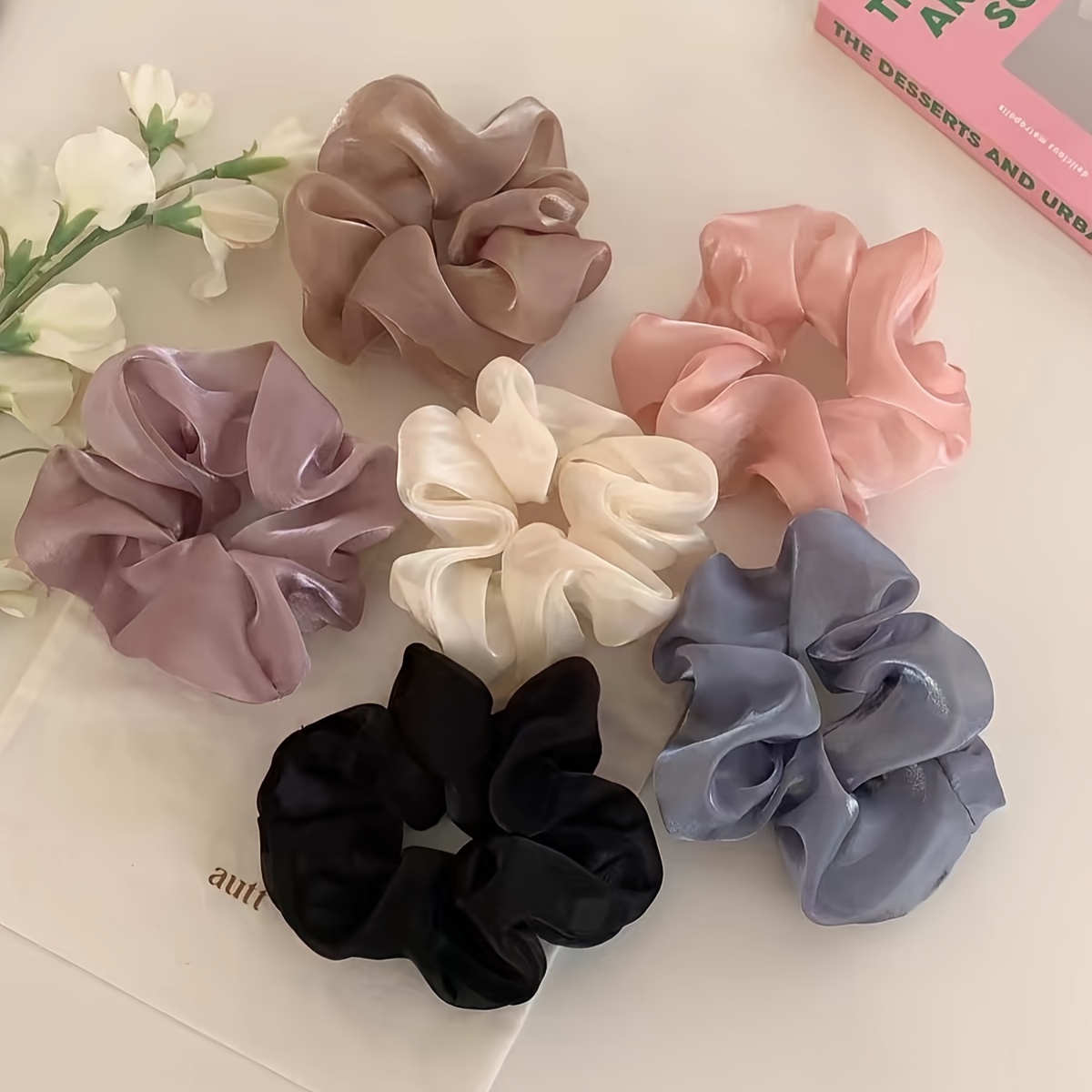 Elegant 6pcs Silky Scrunchie Set – Solid