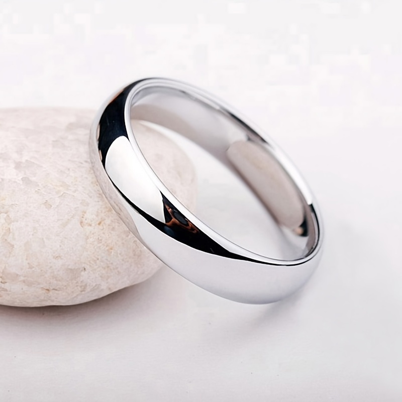 Elegant men’s stainless steel ring-silvery-plated, round design-perfect wedding band or couple’s gift by panash