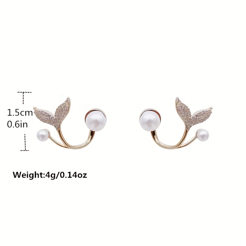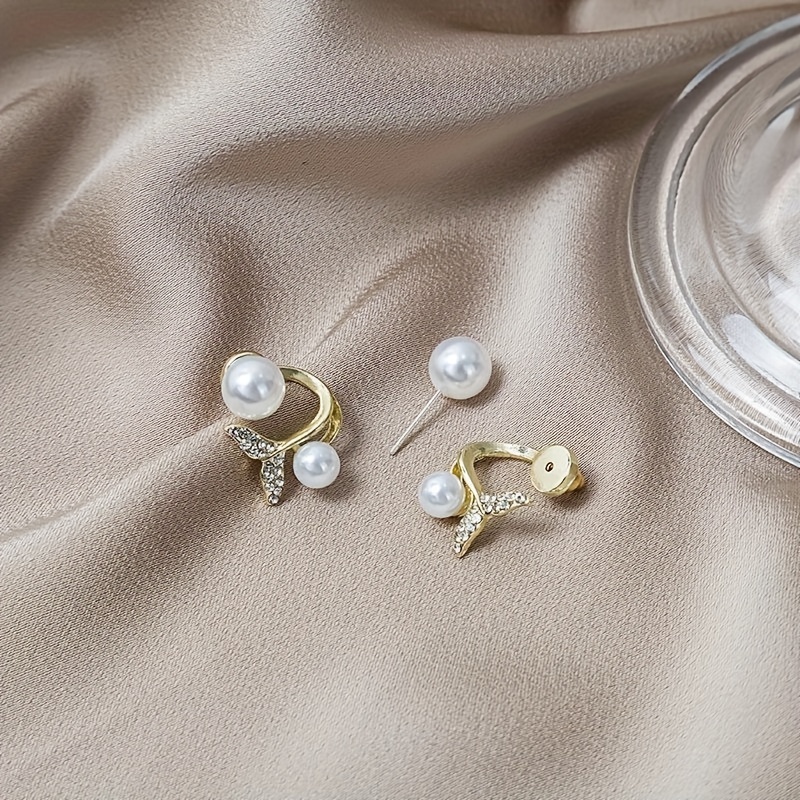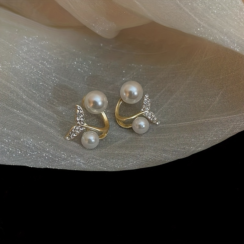 Elegant Mermaid Tail Stud Earrings with Imitation Pearl and Rhinestone Accents, Alloy Fashion Jewelry for Women, Versatile Daily Wear Accessory