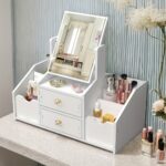 Be the first to review “Elegant White Cat-Themed Makeup Organizer with Mirror & Drawers – Dustproof Wooden Cosmetic Storage Box for Skincare & Jewelry, 360° Rotating Design, No Electricity Required, Perfect for Vanity Display” Cancel reply