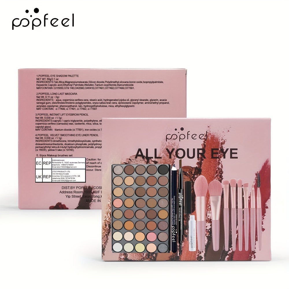 Eye Makeup Set Gift Box, Eyeshadow Eyeliner Mascara Eyebrow Pencil With Matching Brushes Makeup Kits, Ideal Gift For Mother’s Day Makeup Set