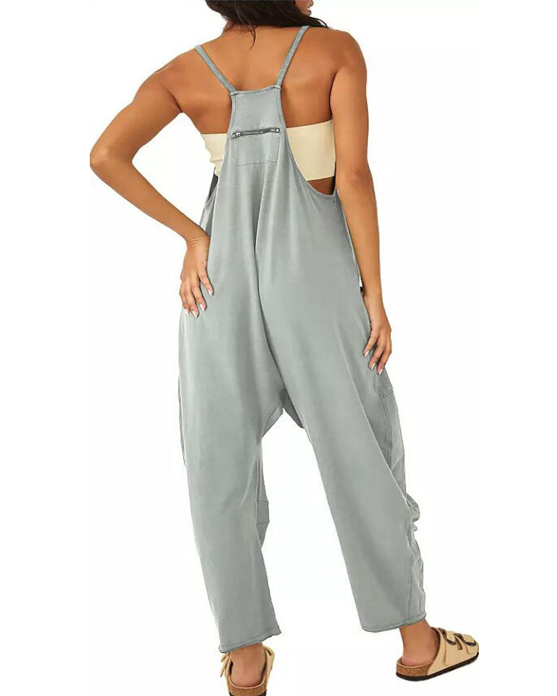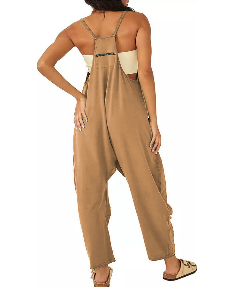 Fashion Jumpsuit Solid Color Zipper Overalls Strap Romper Plus Size Jumpsuit