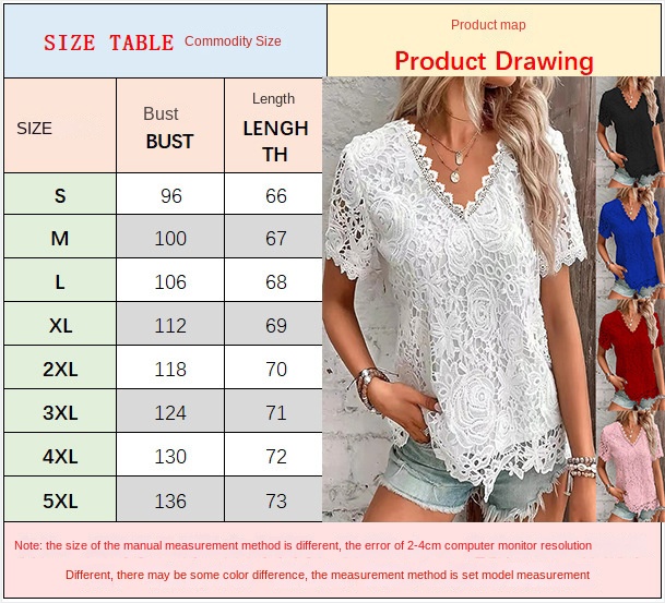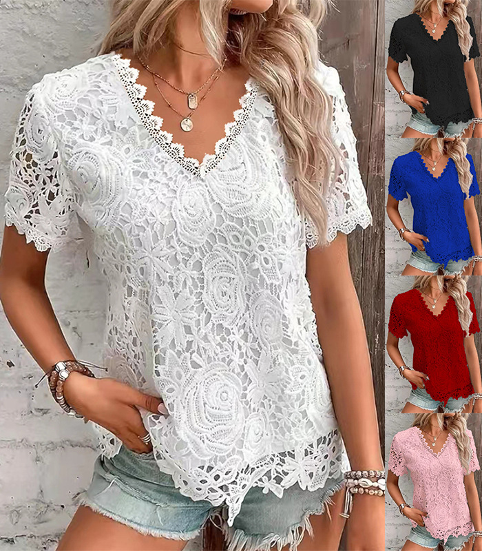 Fashion Lace Short Sleeve Top European and American Women’s Clothing Fashion Tops T-shirt Lace Short Sleeve Women
