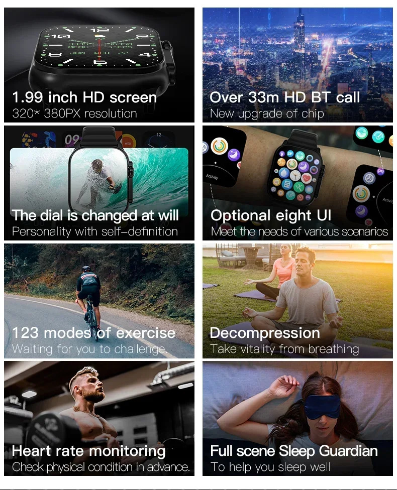 Gaines T900 Ultra 2 Smart Watch 49mm Series 8 2.3 “AMOLED Screen NFC Compass Waterproof For Apple Watch IWO Ultra 8 Smartwatch