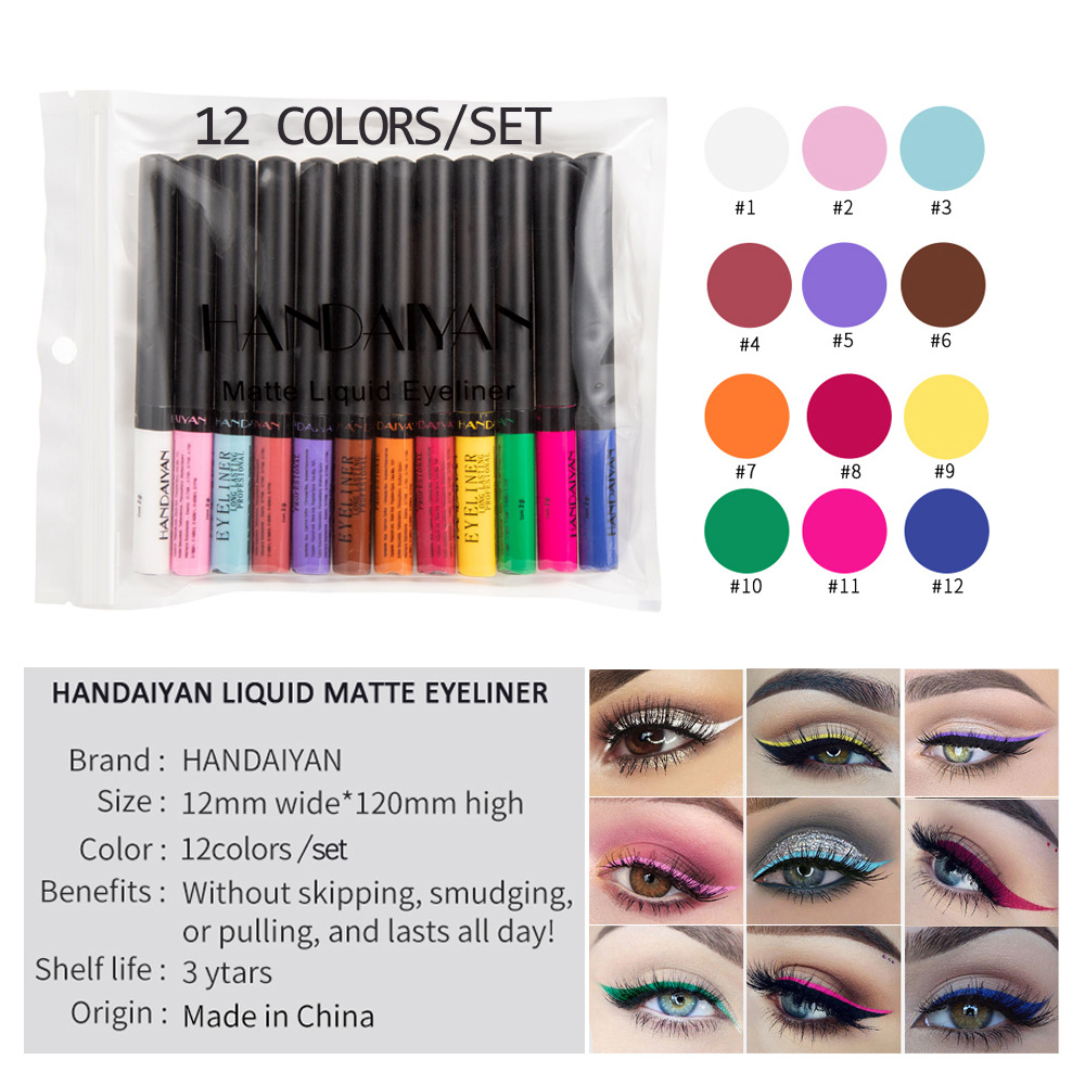 Handaiyan 12Pcs Colorful Eyeliner Set Matte Liquid