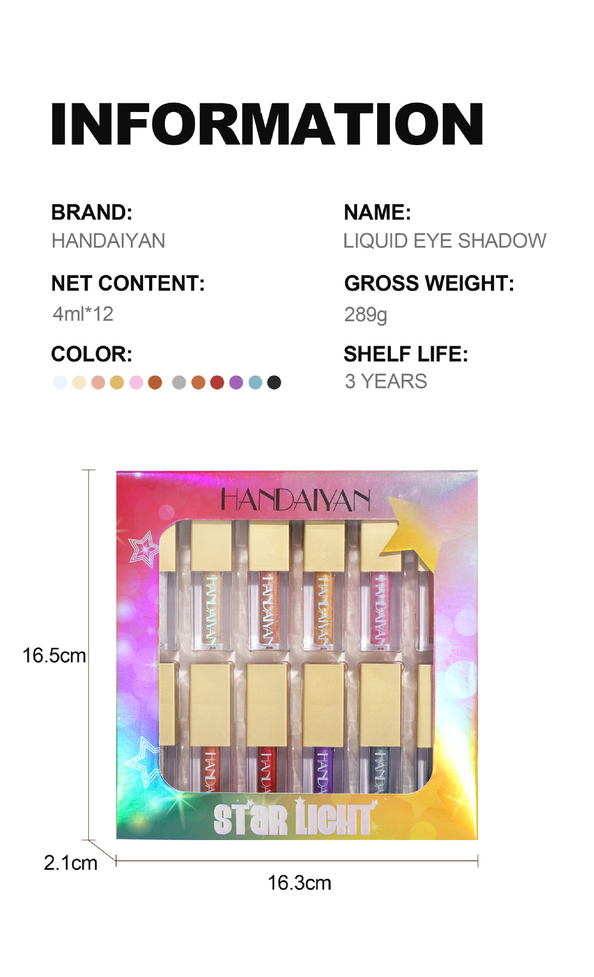 - Color Classification: 12-Color Pearlescent Liquid Eye Shadow Suit