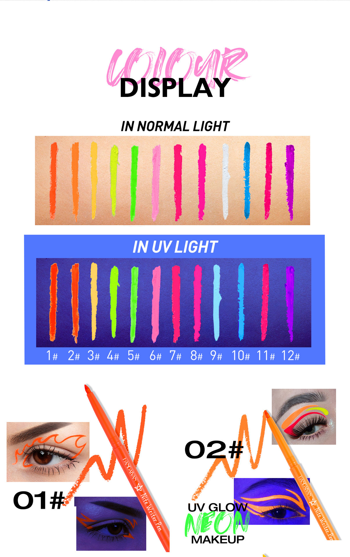 Handaiyan 12Pcs UV Fluorescent Eyeliner Set Colorful