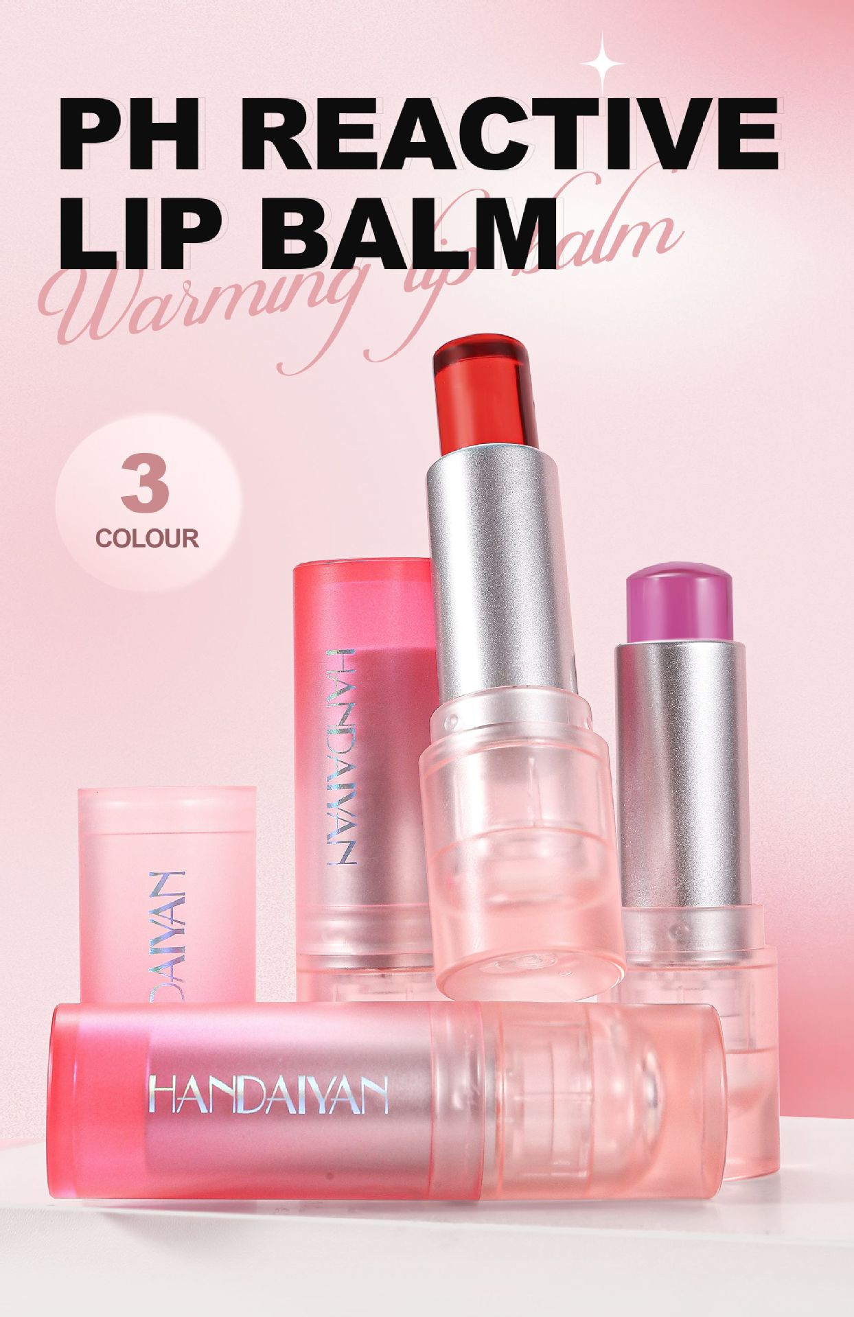 Handaiyan 3 Color Temperature Change Lipstick Moisturizing Moisturizing Long-Lasting Moisturizing Color Change Anti-Chapping Temperature Change Lipstick