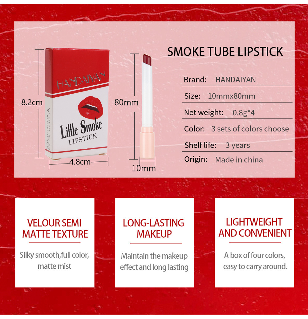 Handaiyan 4Pcs Cigarette Lipstick Set Long Lasting