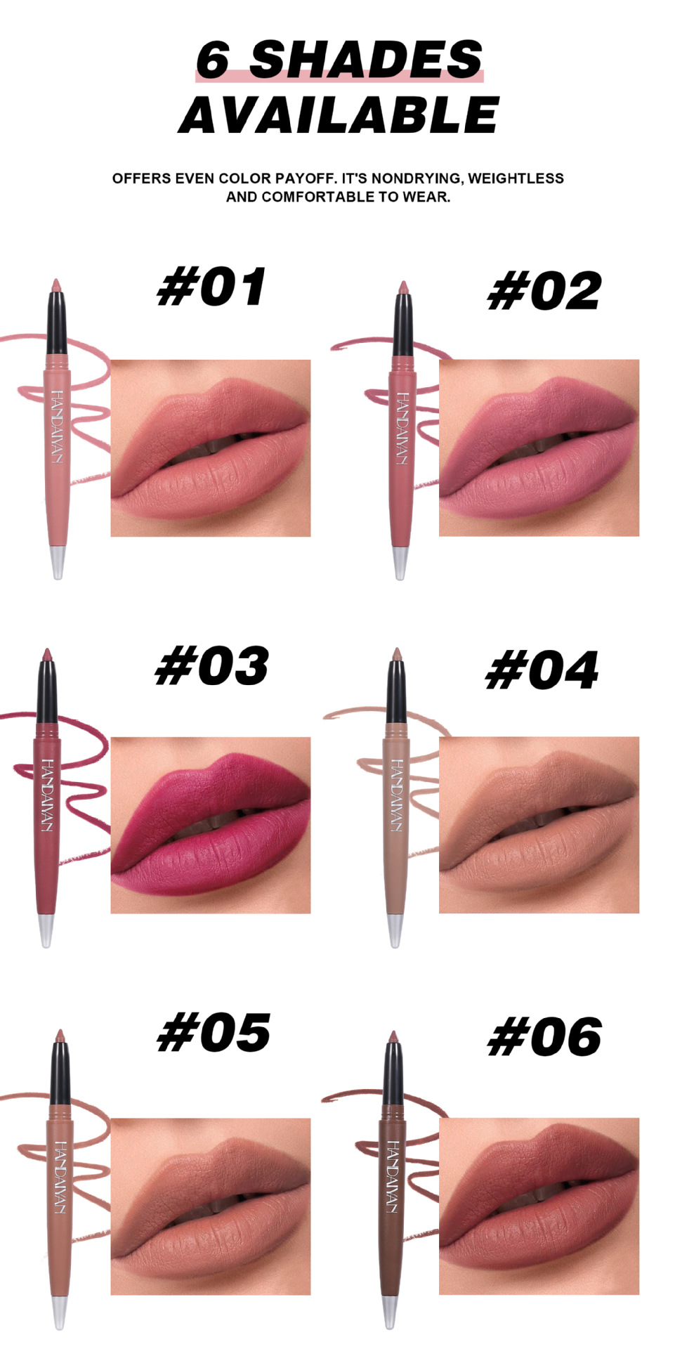Be the first to review “Handaiyan 6-Color Lipstick Matte Lip Liner Lipstick”