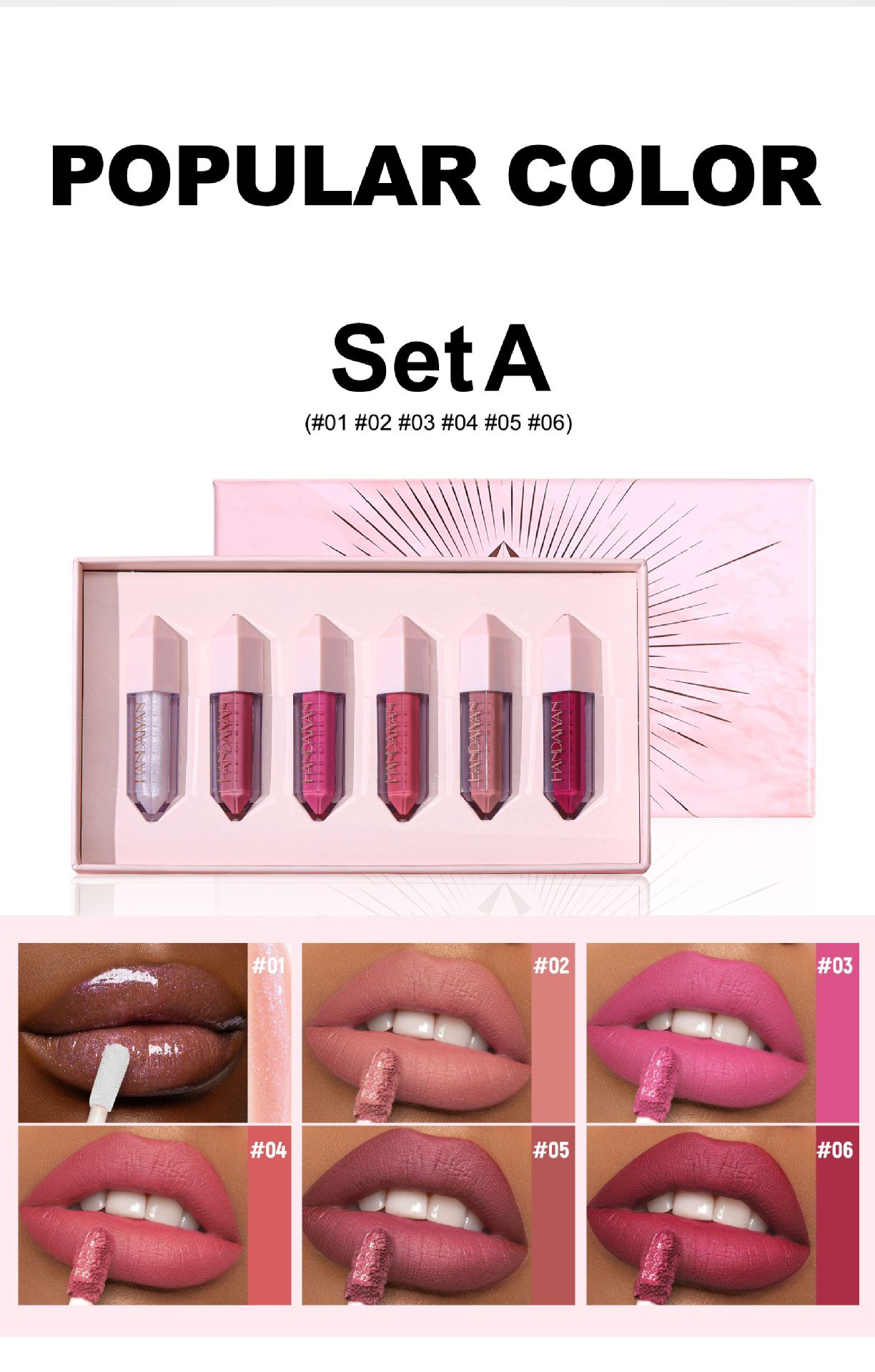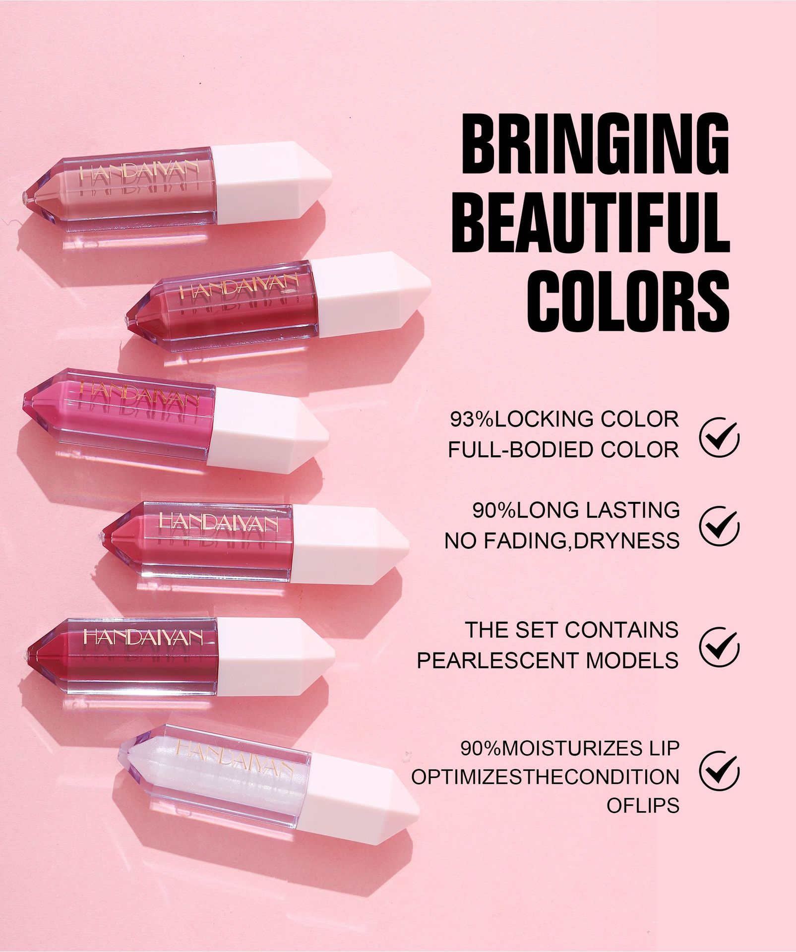 Handaiyan 6Pcs Lip Lacquer Set Lasting Moisturizing