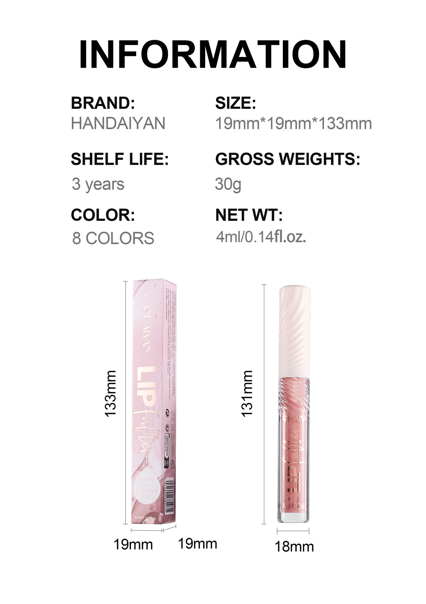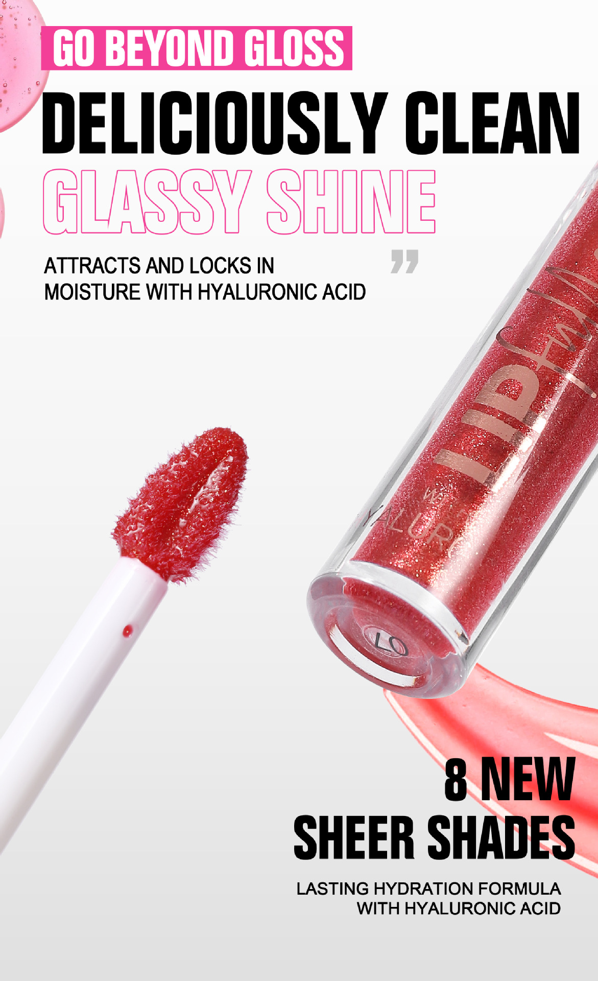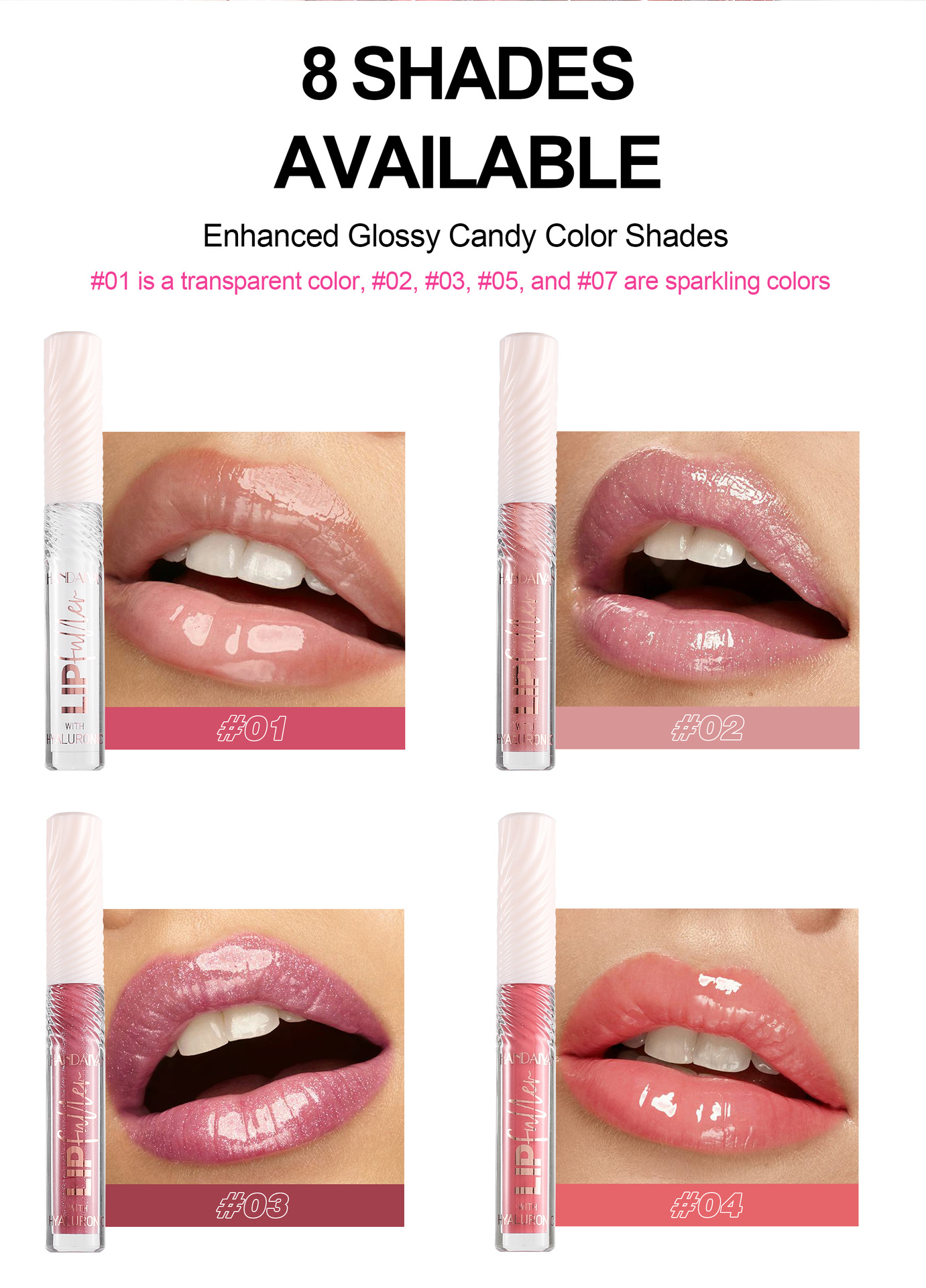 • Product Name: 8-Color Hyaluronic Acid Thin and Glittering Lip Lacquer