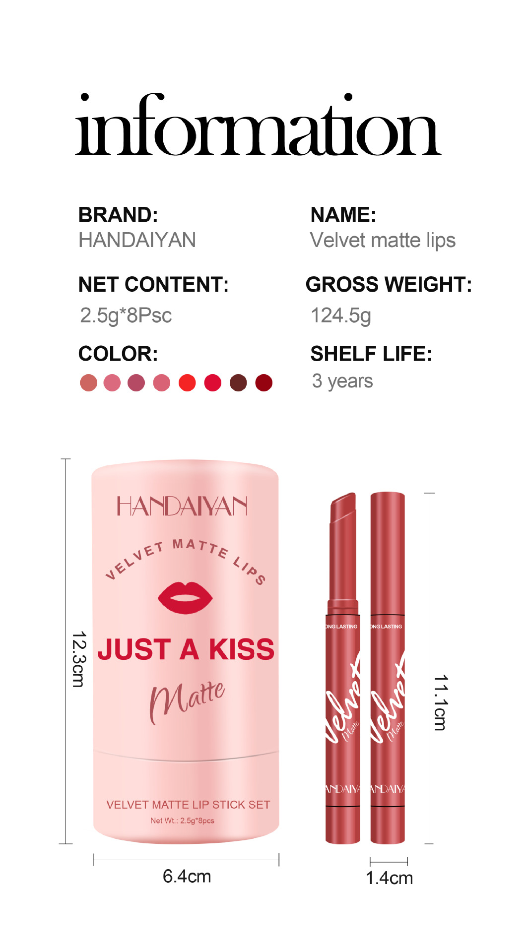 - Color: 8-Color Lipstick Tube