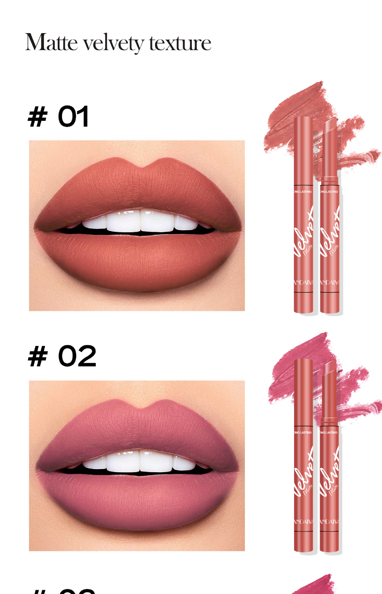 - Texture: Velvet, Moist, Matte