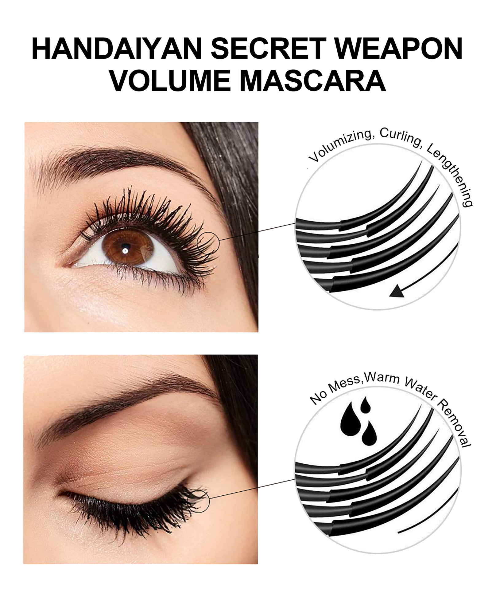 Handaiyan Waterproof Mascara Not Smudge Long Curling