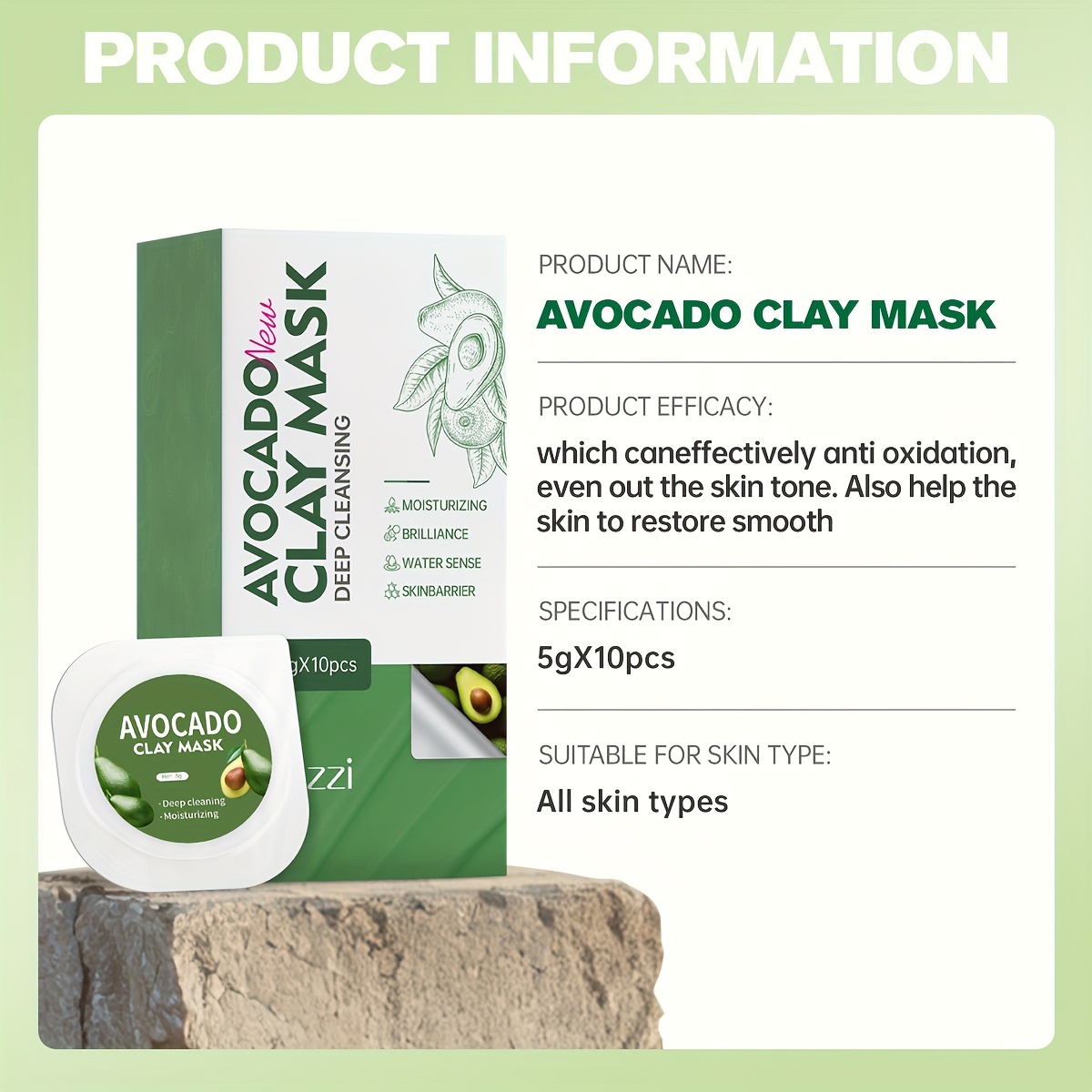 Hllozzi 10pcs Avocado Clay Mask, 5g Each,