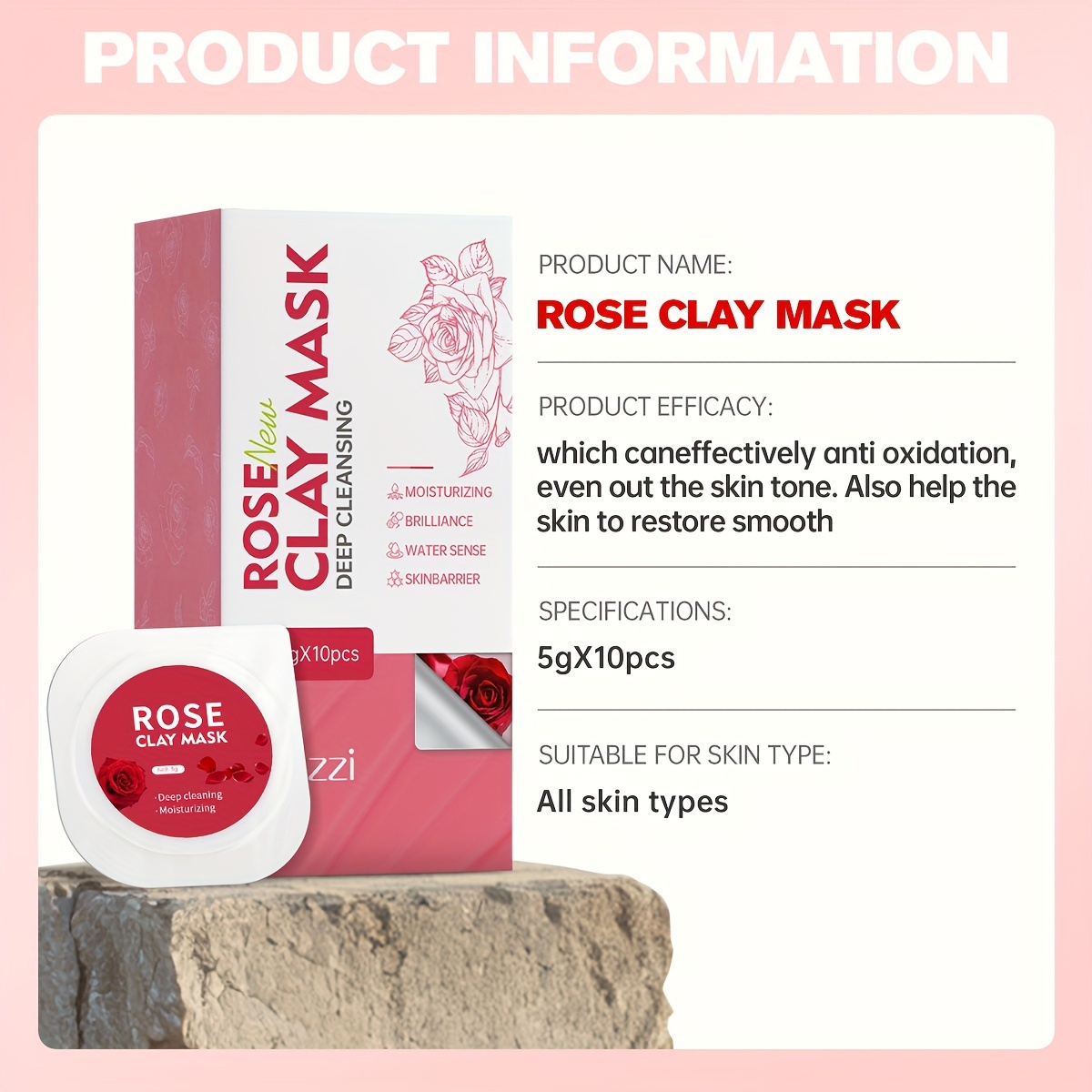 Hllozzi 10pcs Rose Clay Mask Set, 5g