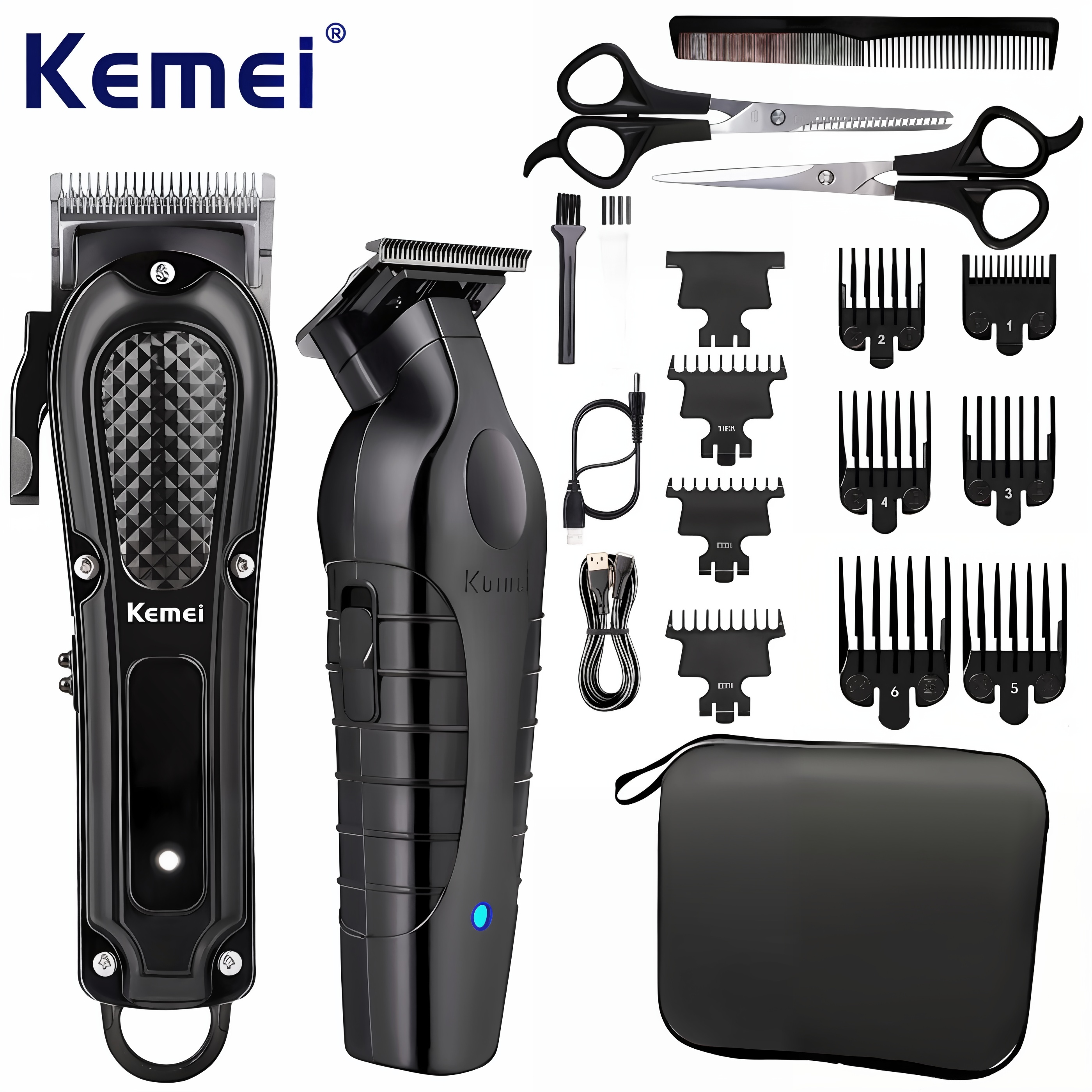 Kemei Professional Cordless Hair Clippers Kit, USB
