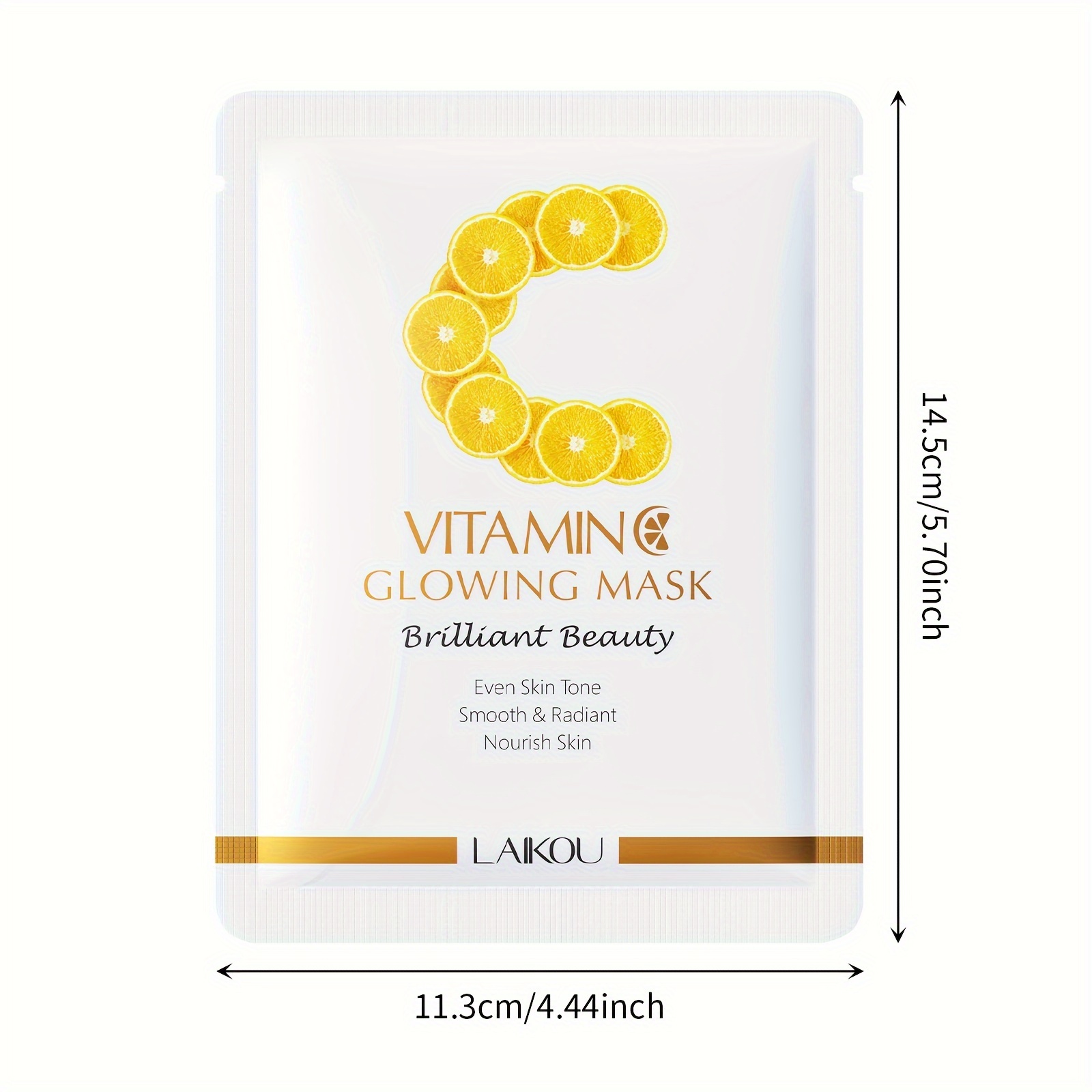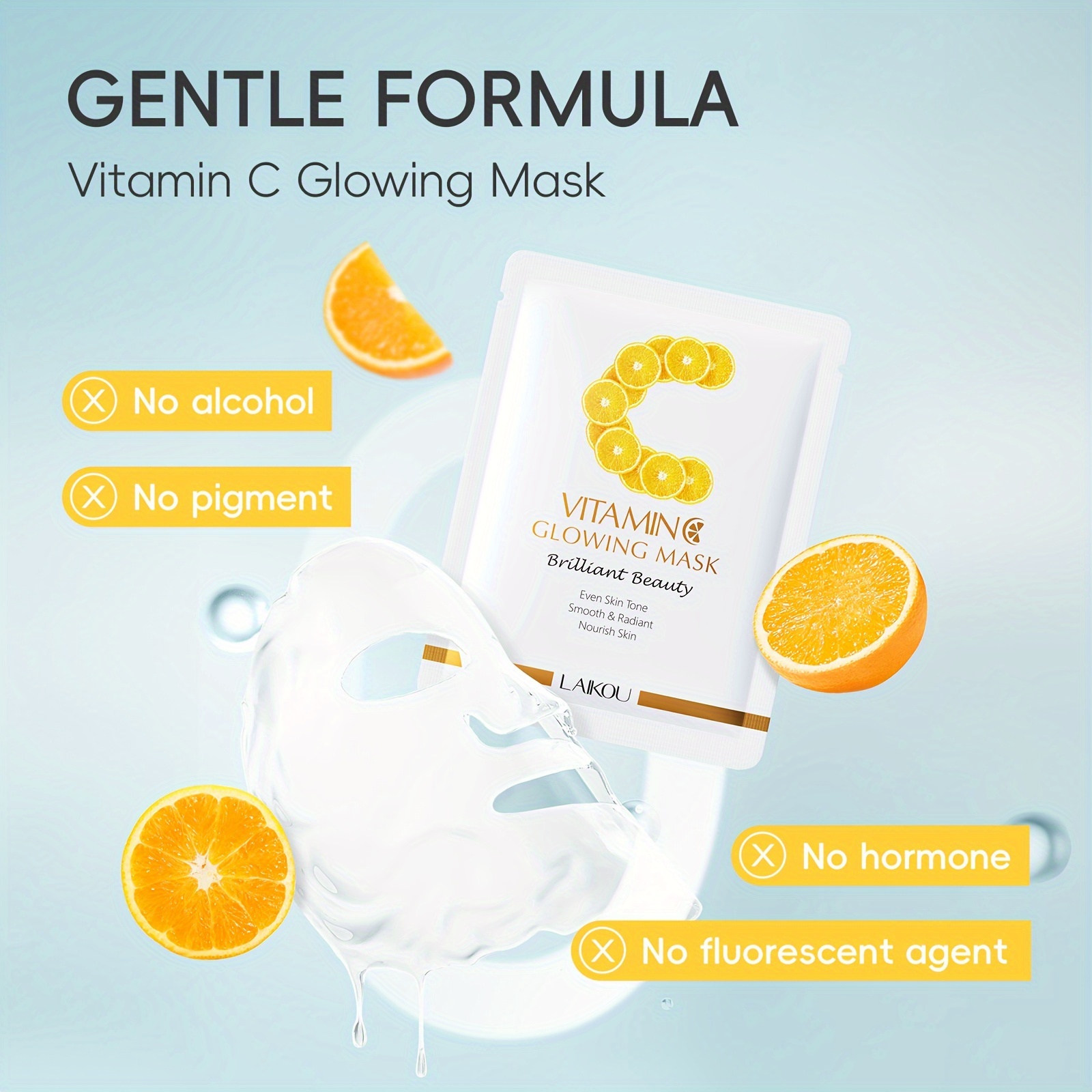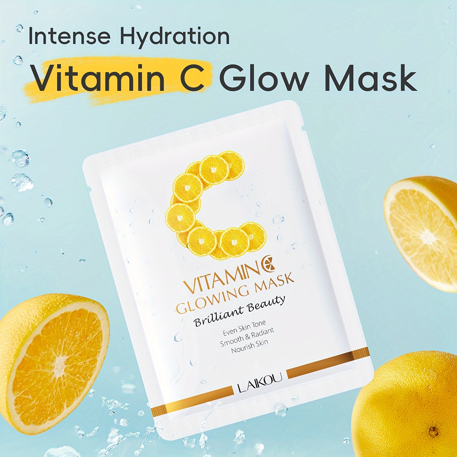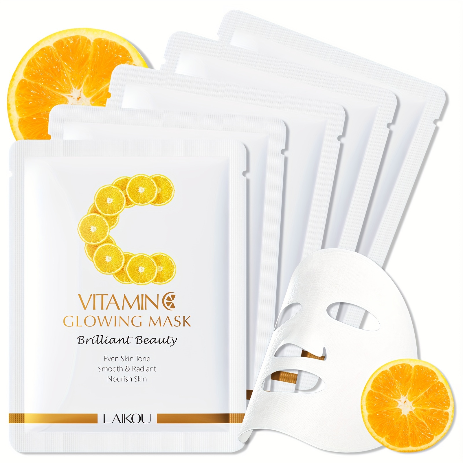 LAIKOU Vitamin C Glowing Mask Sheets 0.88oz x 5pcs – Deep Hydration & Plumping, Moisture Retention, Hypoallergenic, Formaldehyde-Free for All Skin Types