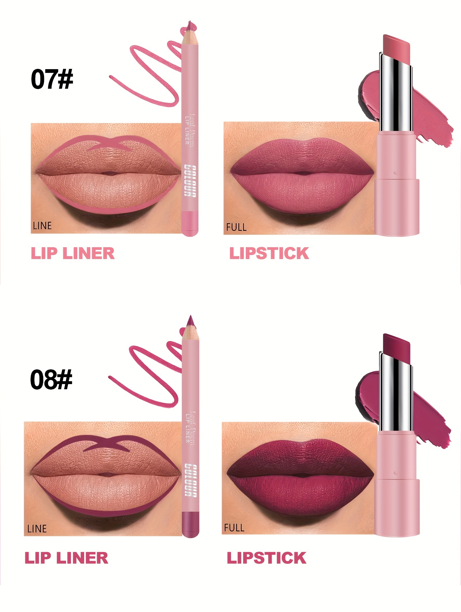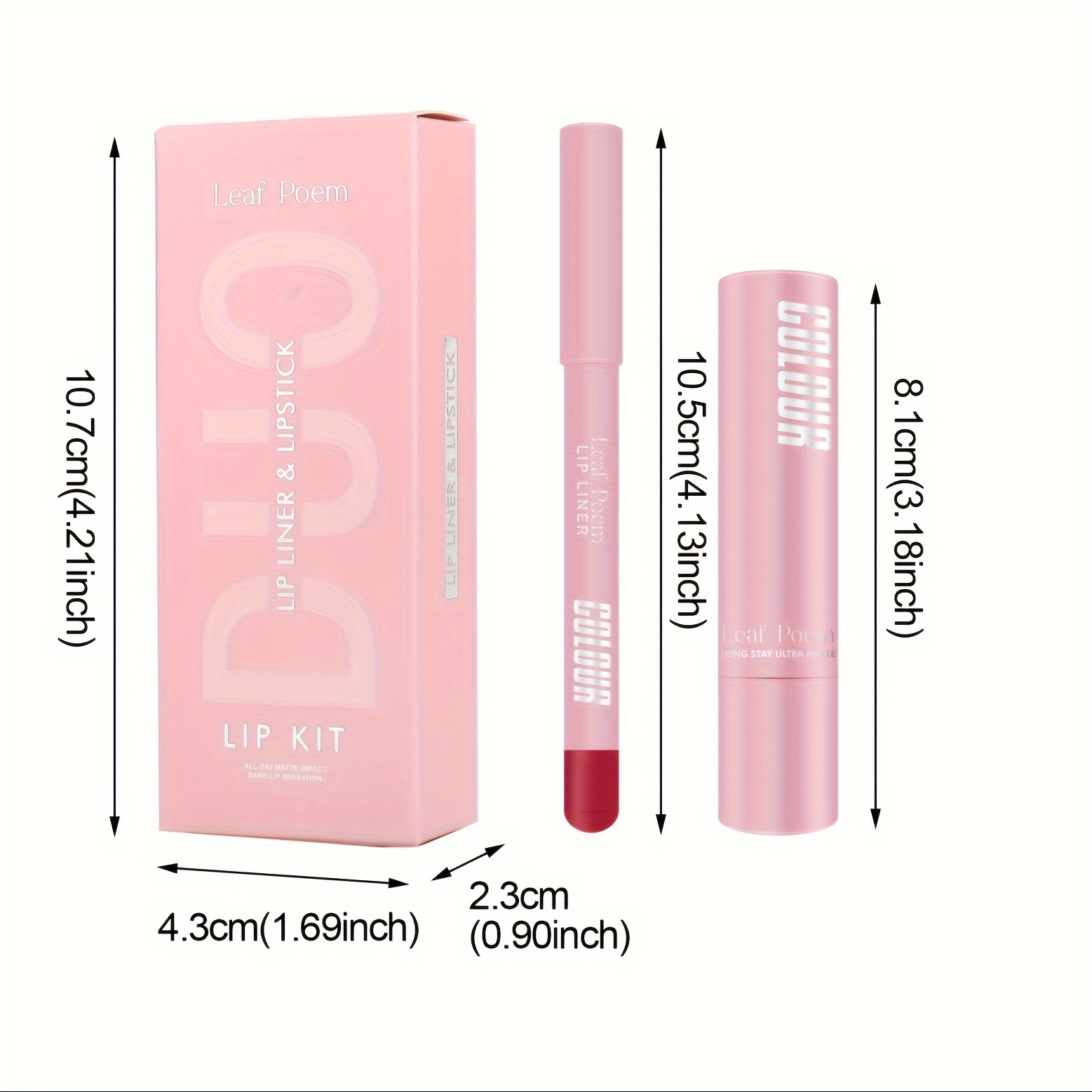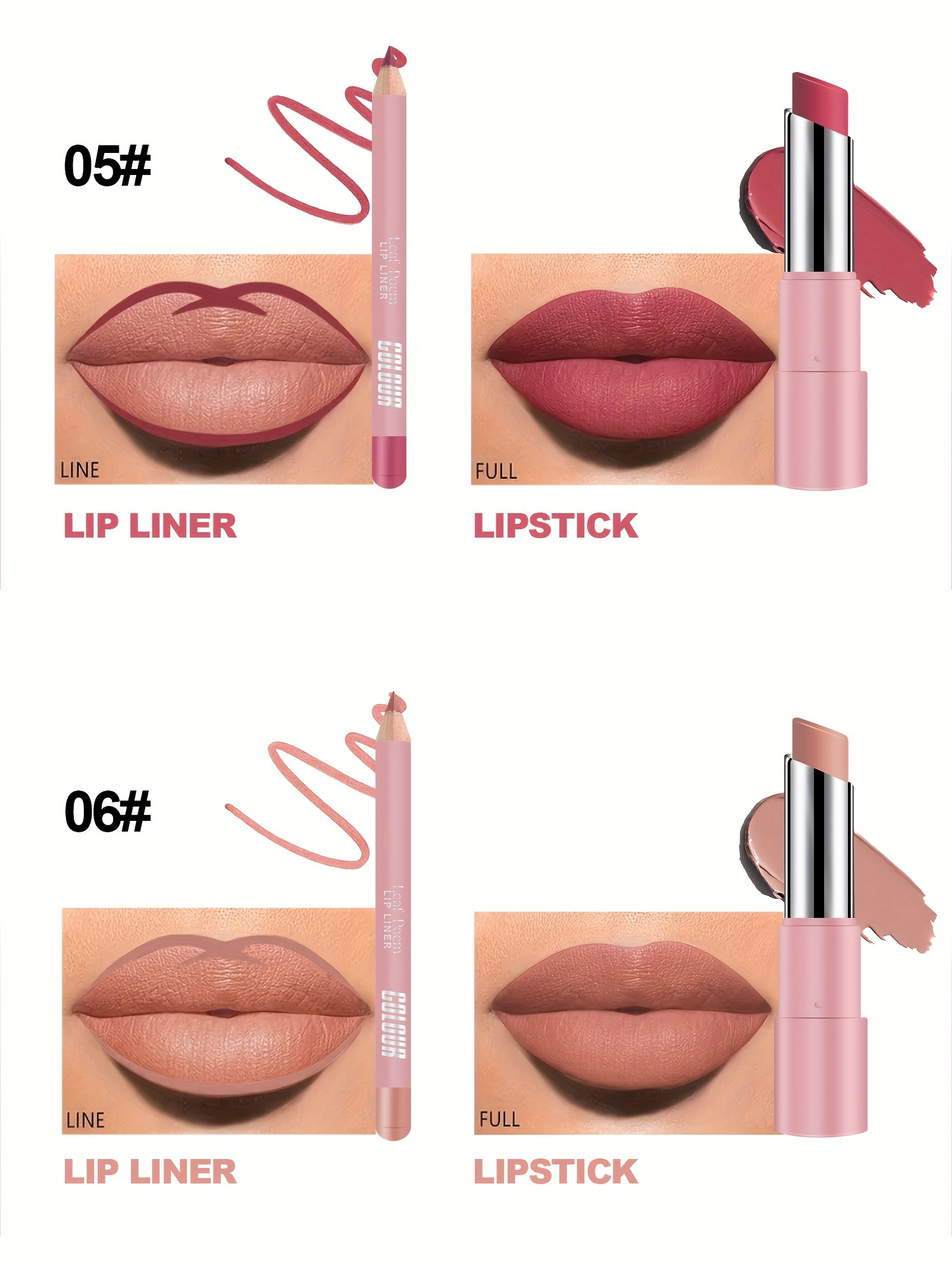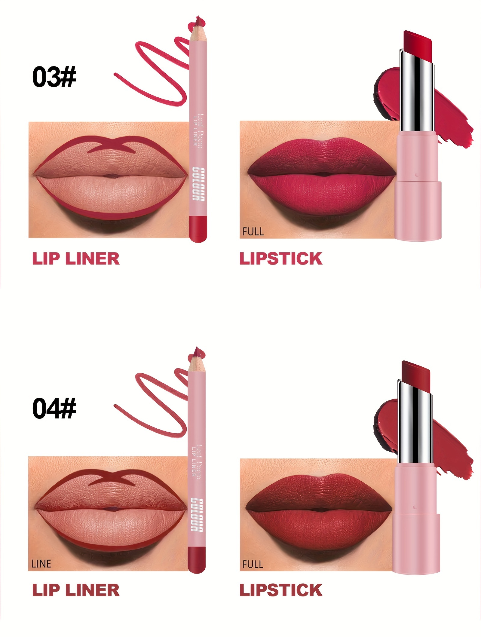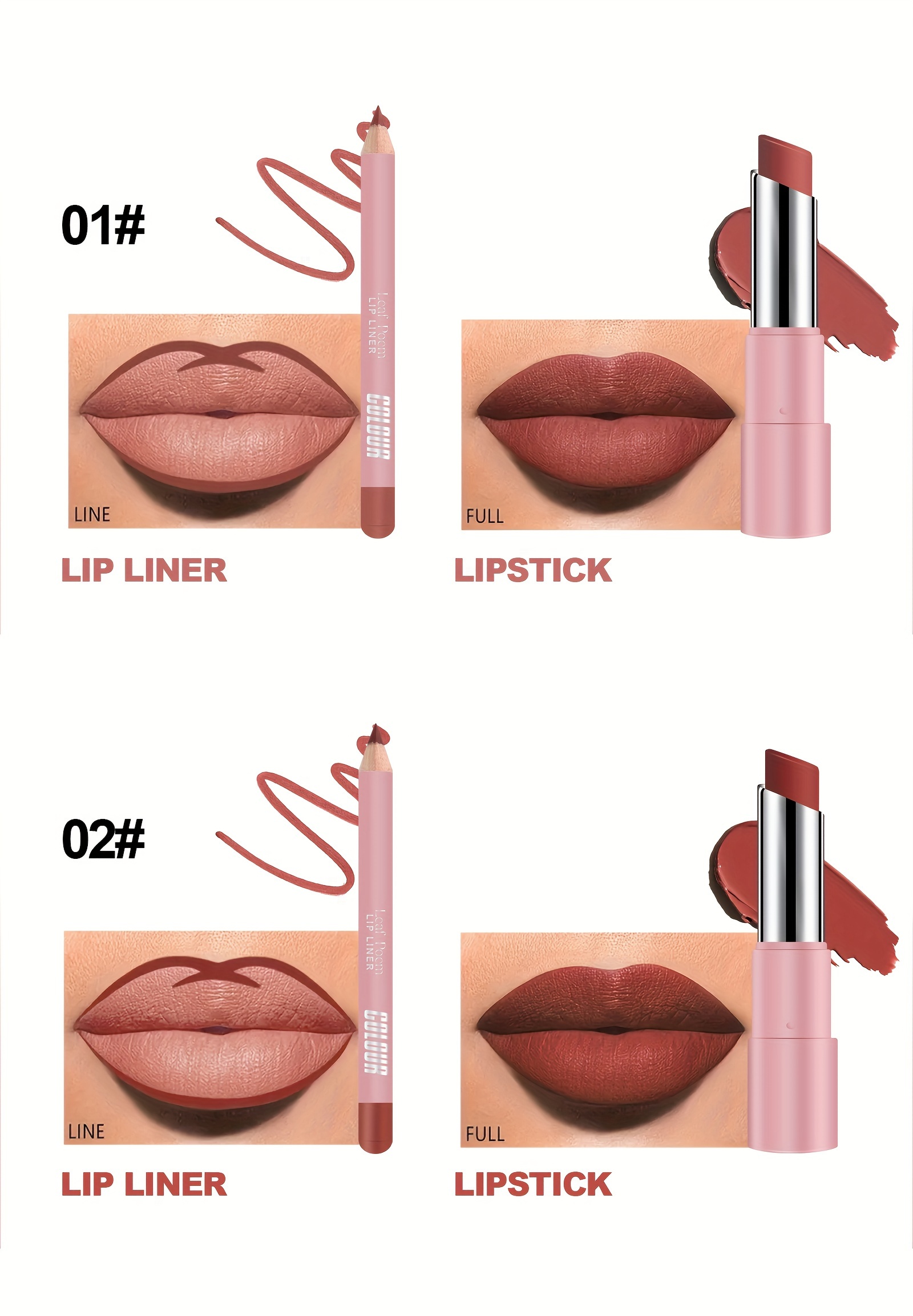 Lip Liner & Lipstick Set, Long-Lasting Waterproof Matte Lipstick, Dual-Ended Lip Liner Pencil, Nourishing, for All Skin Types, Brown, Orange, Pink, Purple, Red Shades with Plant Squalane