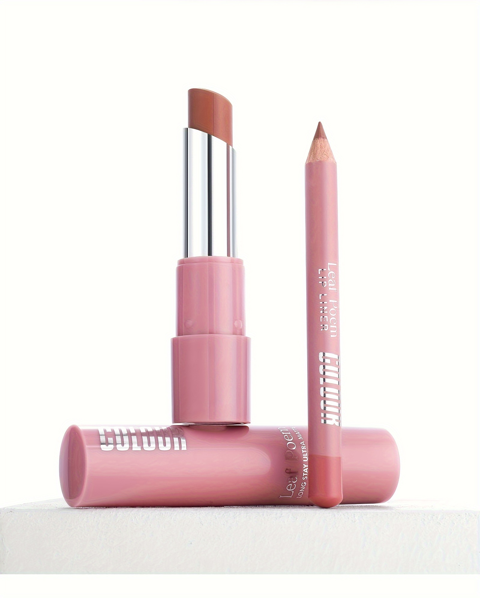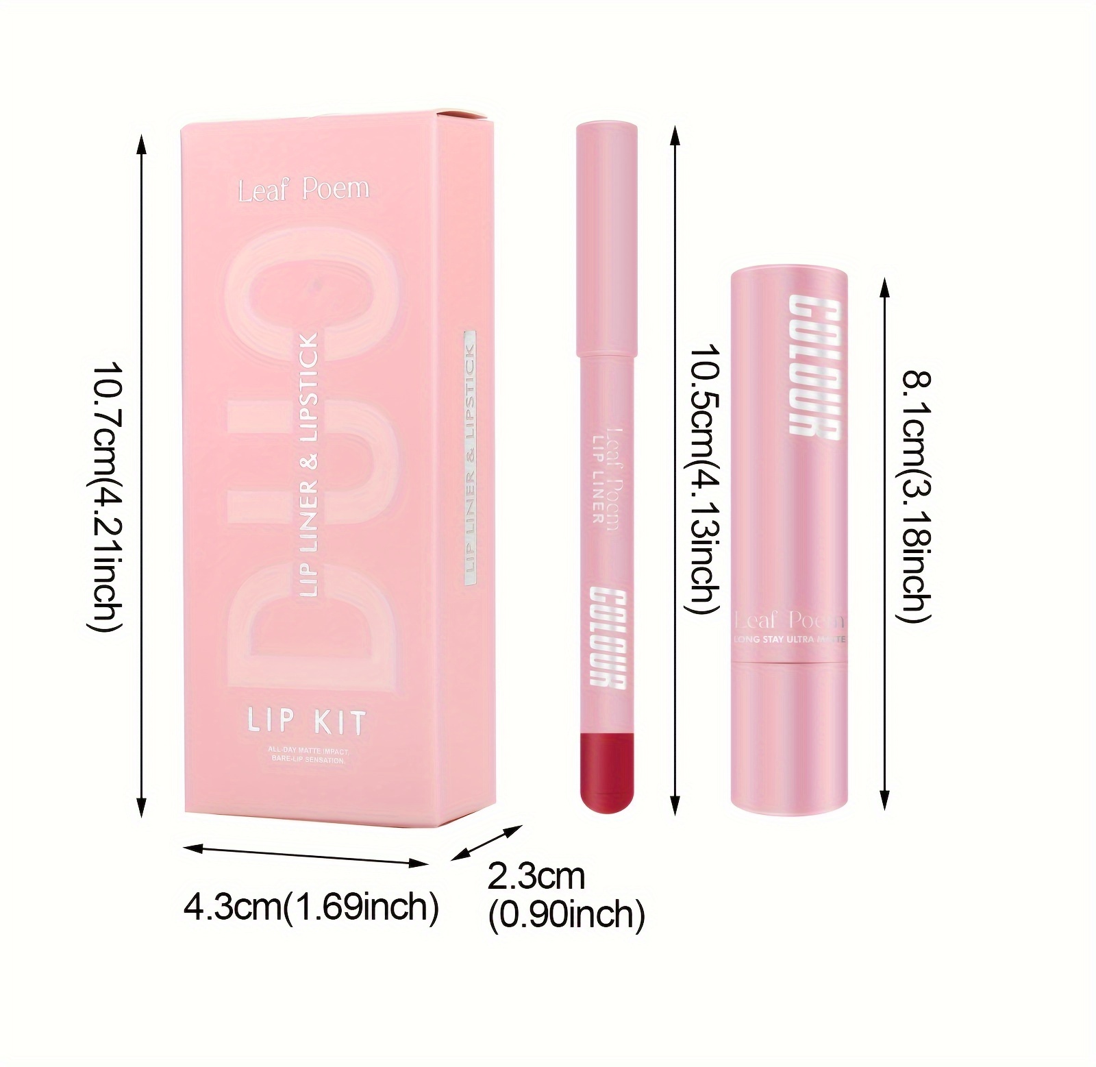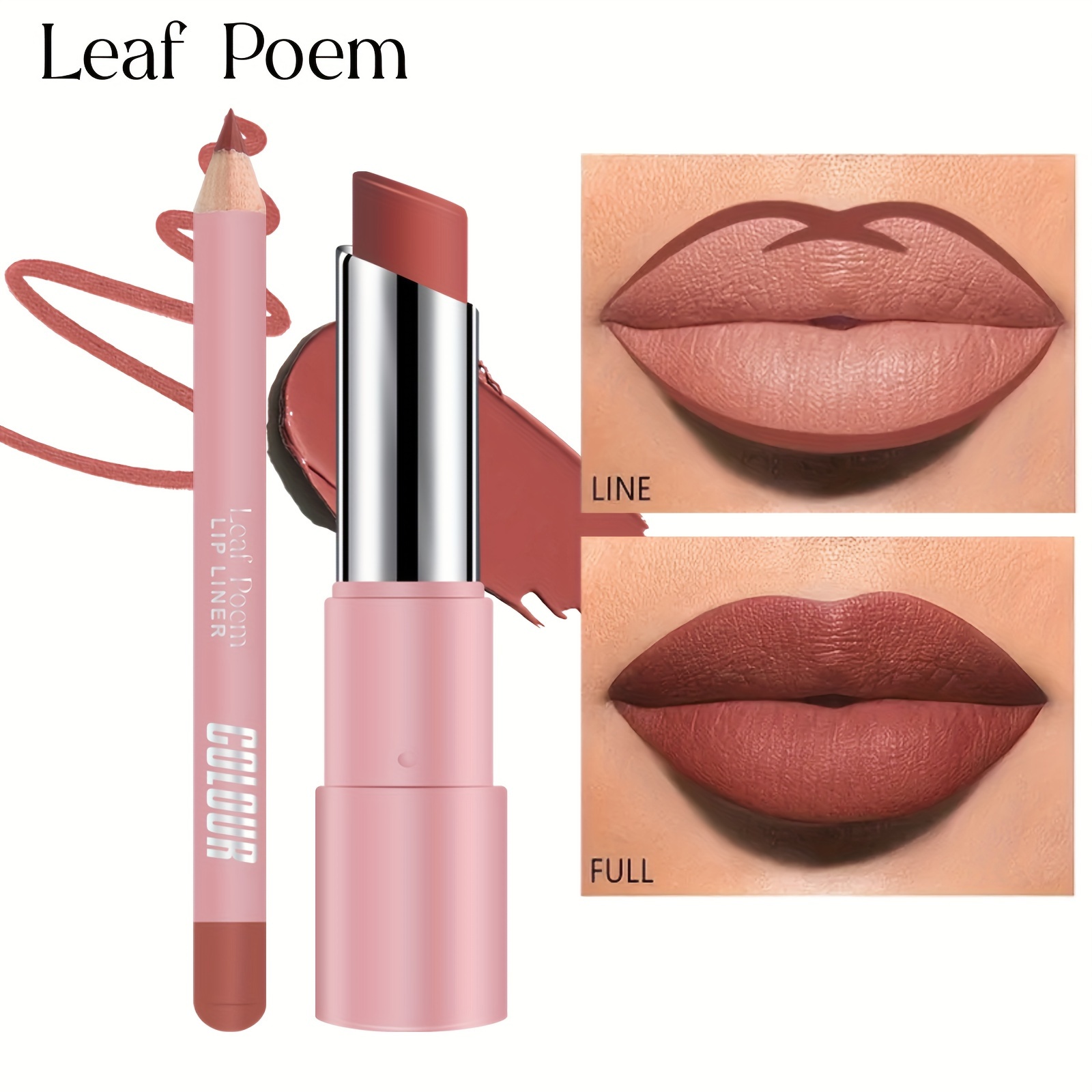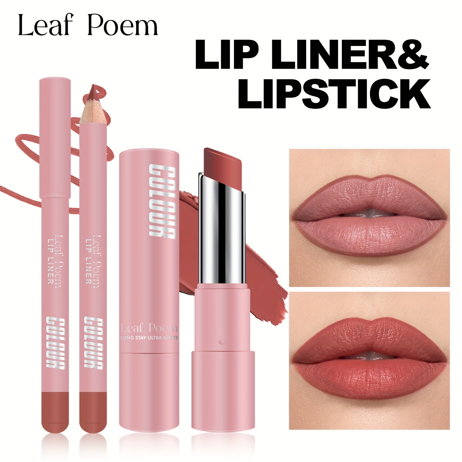 Lip Liner & Lipstick Set, Long-Lasting Waterproof Matte Lipstick, Dual-Ended Lip Liner Pencil, Nourishing, for All Skin Types, Brown, Orange, Pink, Purple, Red Shades with Plant Squalane