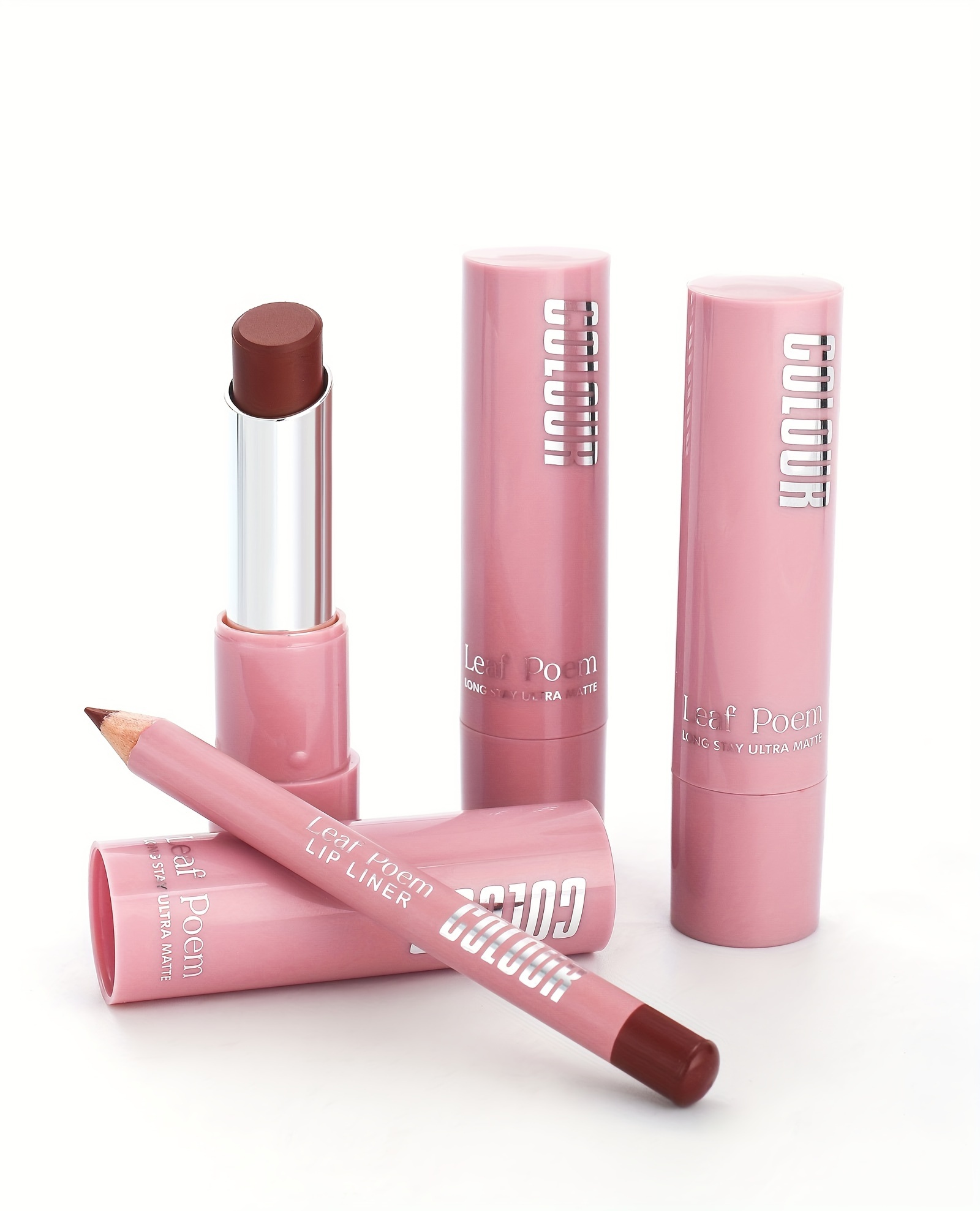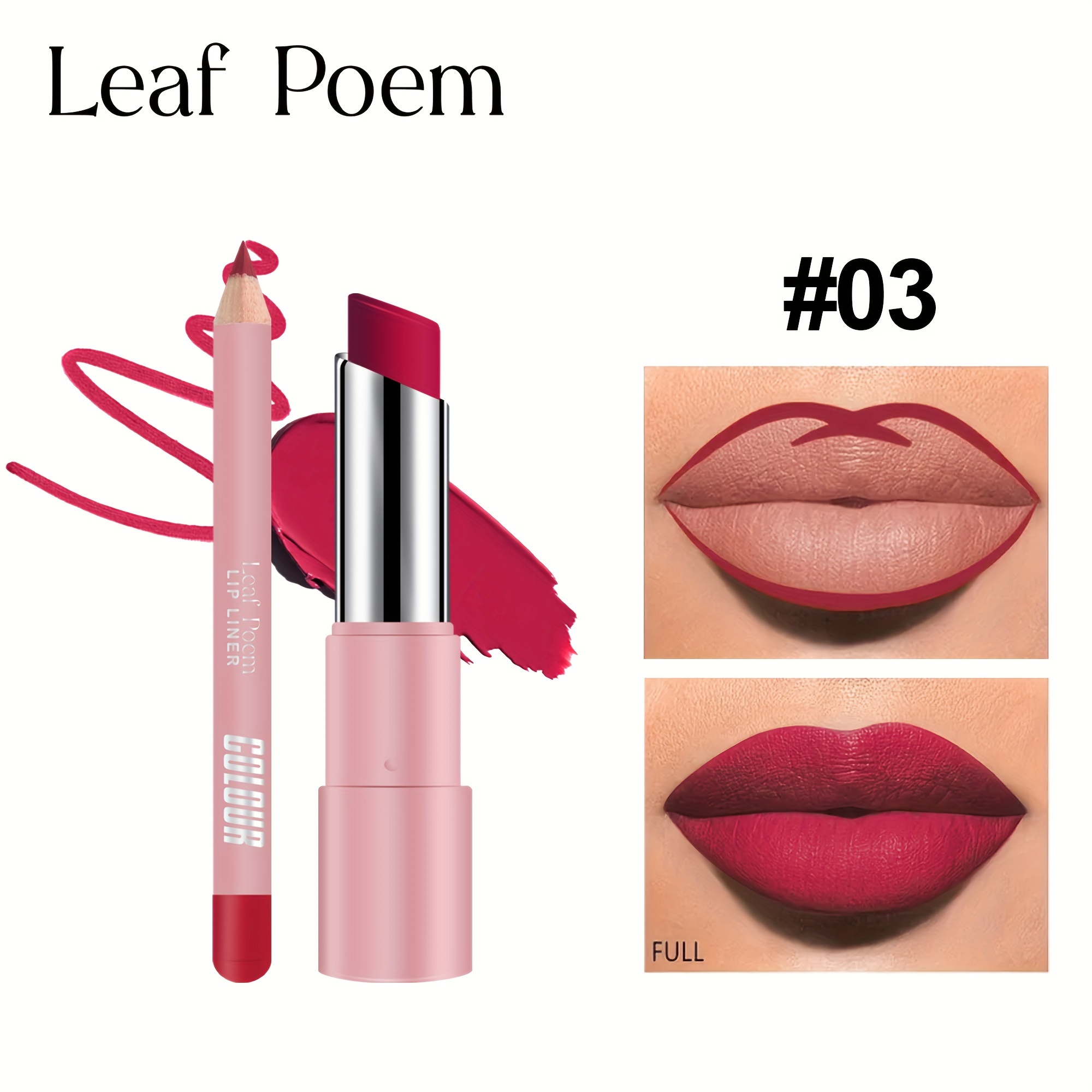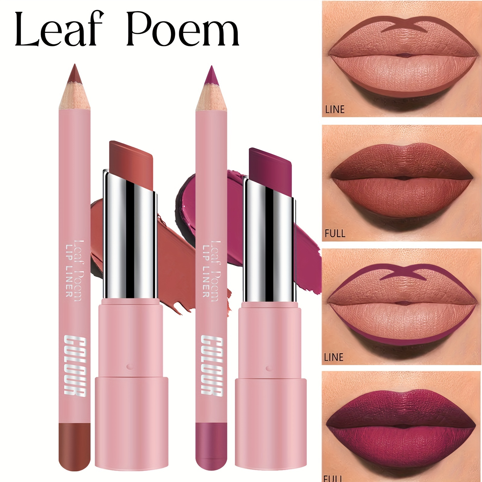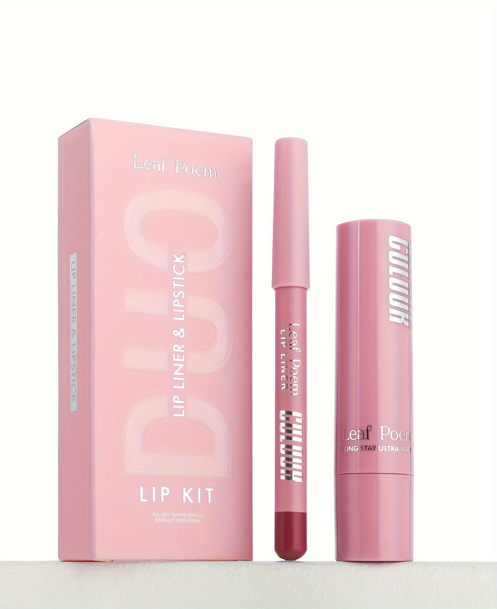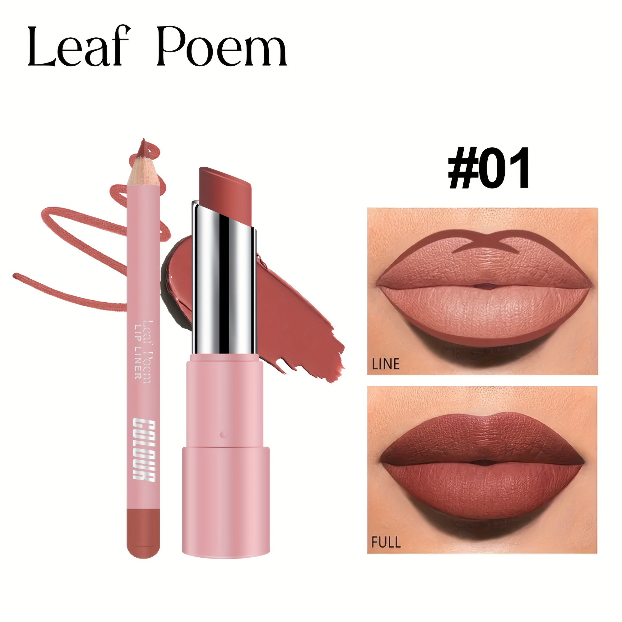 Lip Liner & Lipstick Set, Long-Lasting Waterproof Matte Lipstick, Dual-Ended Lip Liner Pencil, Nourishing, for All Skin Types, Brown, Orange, Pink, Purple, Red Shades with Plant Squalane