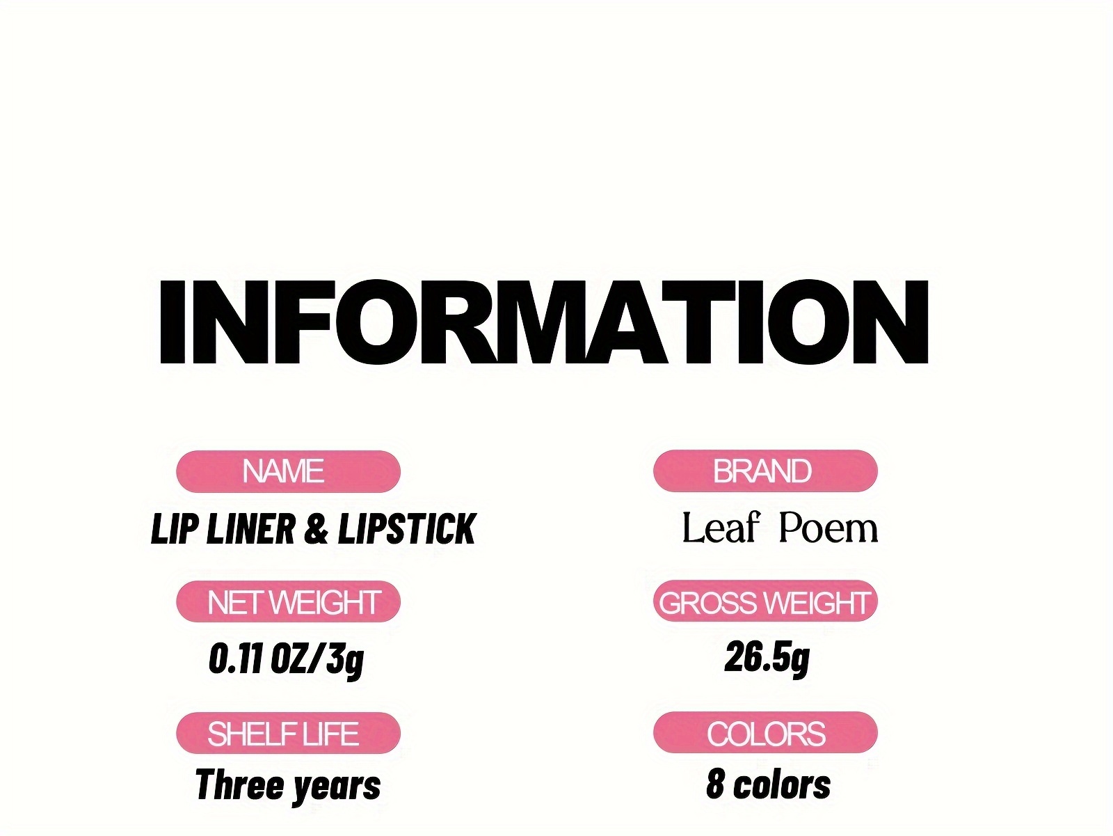 Be the first to review “Lip Liner & Lipstick Set, Long-Lasting Waterproof Matte Lipstick, Dual-Ended Lip Liner Pencil, Nourishing, for All Skin Types, Brown, Orange, Pink, Purple, Red Shades with Plant Squalane” Cancel reply
