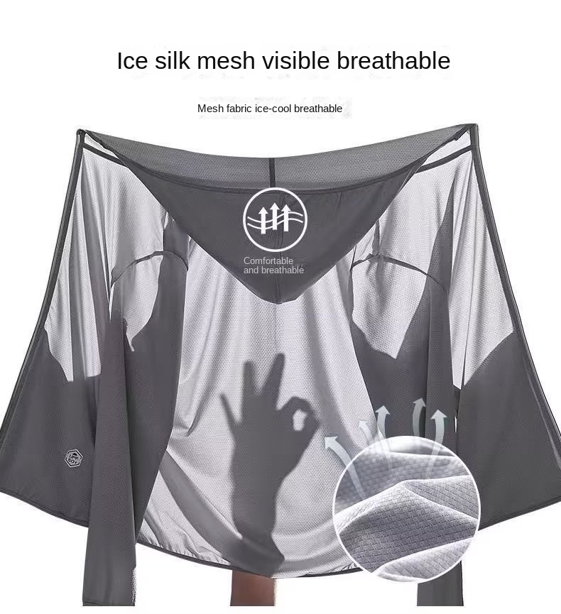 Be the first to review “Men’s Ice Silk Sun Protection Jacket Summer Thin Mesh Breathable Coat Outdoor UV Protection Fishing Cycling Sun Protection Clothing for Men”