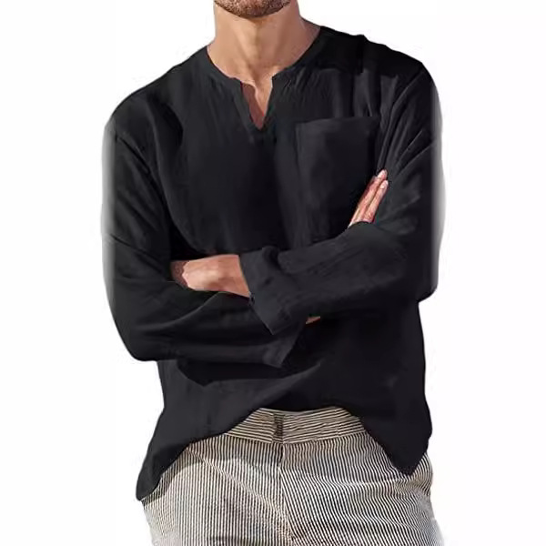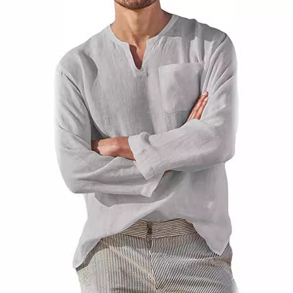 Men’s Long Sleeve V Neck Shirt Casual Beach Linen Shirt