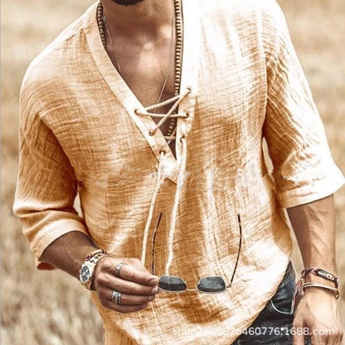 Men’s T-Shirt Tie Mid-Sleeve T-Shirt Men’s Shirt