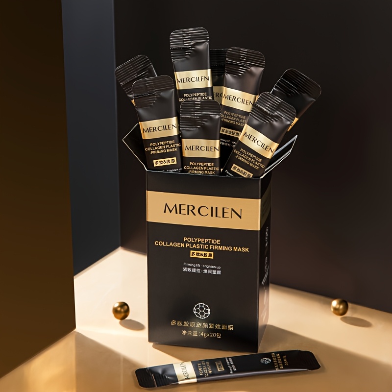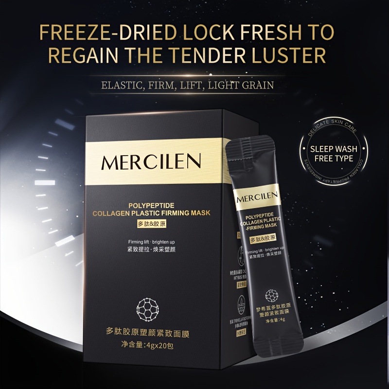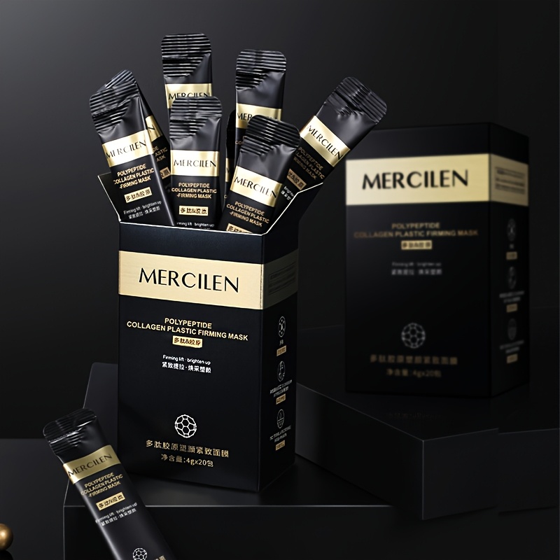 MERCILEN Collagen Polypeptide Firming Face Mask, 20pcs – Hydrating & Skin Tightening with Hyaluronic & Elastin, Hypoallergenic, Suitable for All Skin Types, Portable Travel Essential