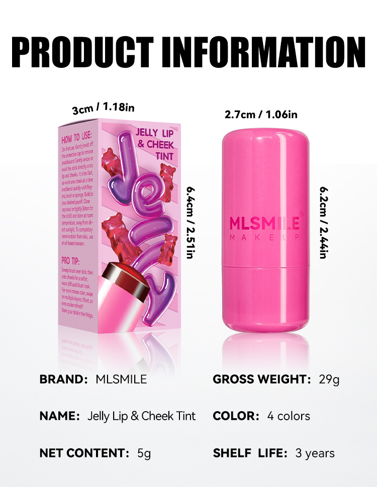 MLSMILE 4 Colors 2-In-1 Lipstick Jelly Blush Lip Tint For Lips And Cheeks Transparent Lipstick