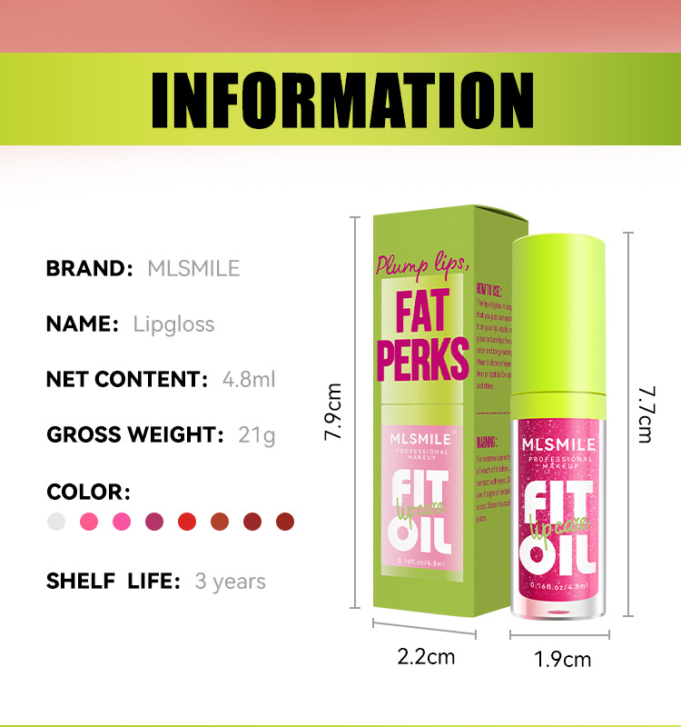 MLSMILE 8 Colors Lip Gloss Lip Oil Lip Glaze Mirror Long-lasting Shimmer Pouty Lips Plumping Lipstick Transparent Lip Oil