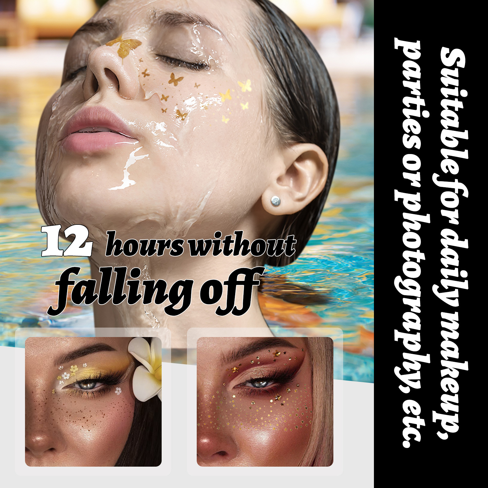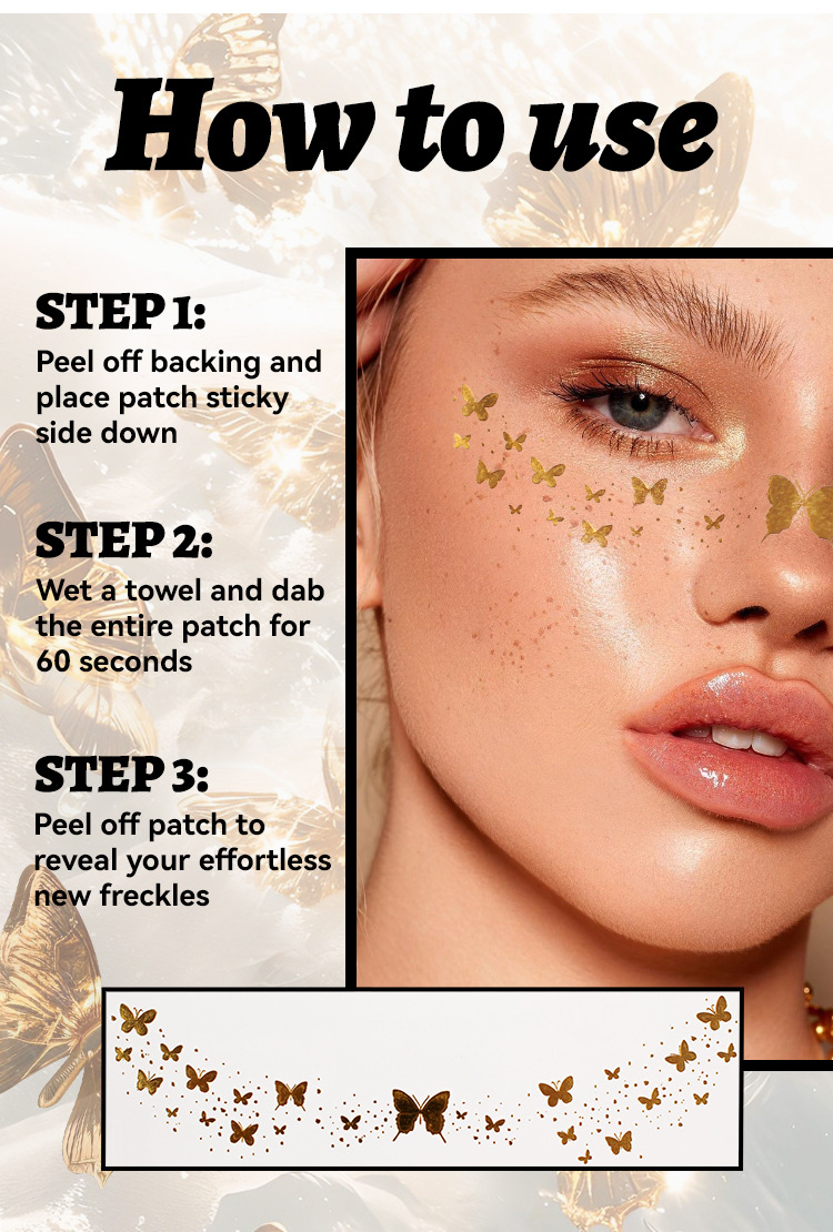 Be the first to review “MLSMILE Gold Foil Tattoo Stickers European and American Waterproof Glitter Stars Butterflies Party Stage Performance Freckle Stickers” Cancel reply