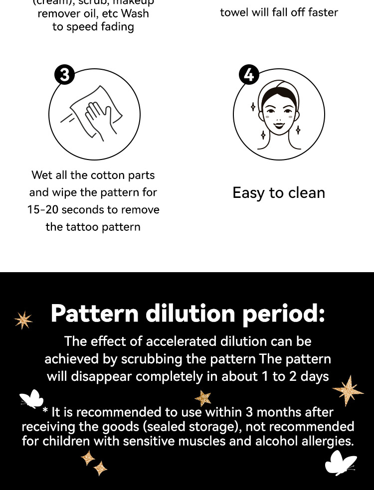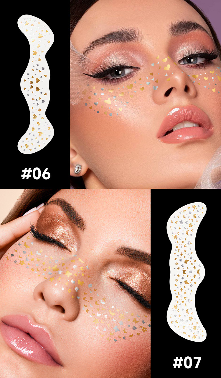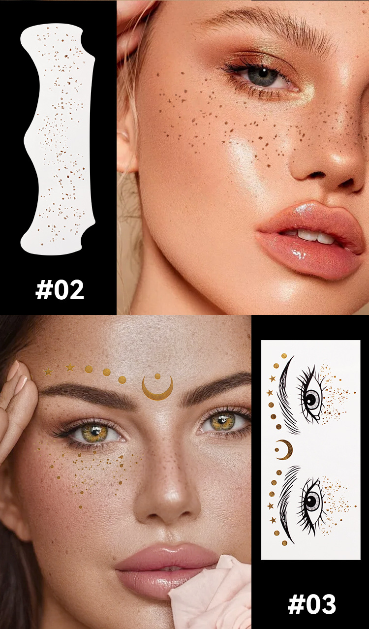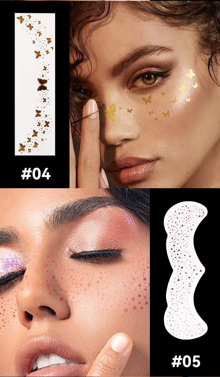 MLSMILE Gold Foil Tattoo Stickers European and American Waterproof Glitter Stars Butterflies Party Stage Performance Freckle Stickers