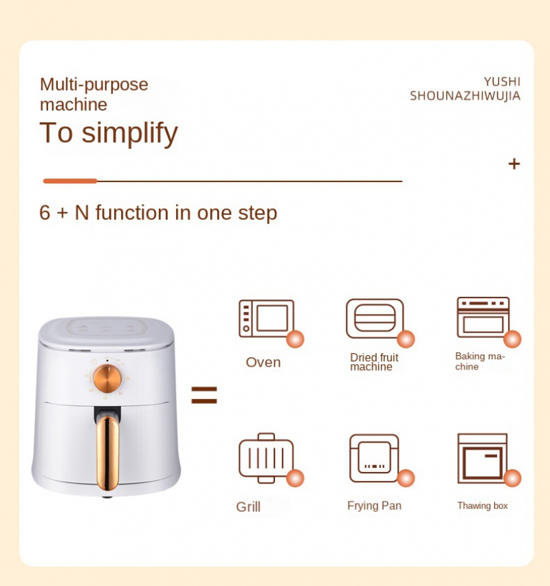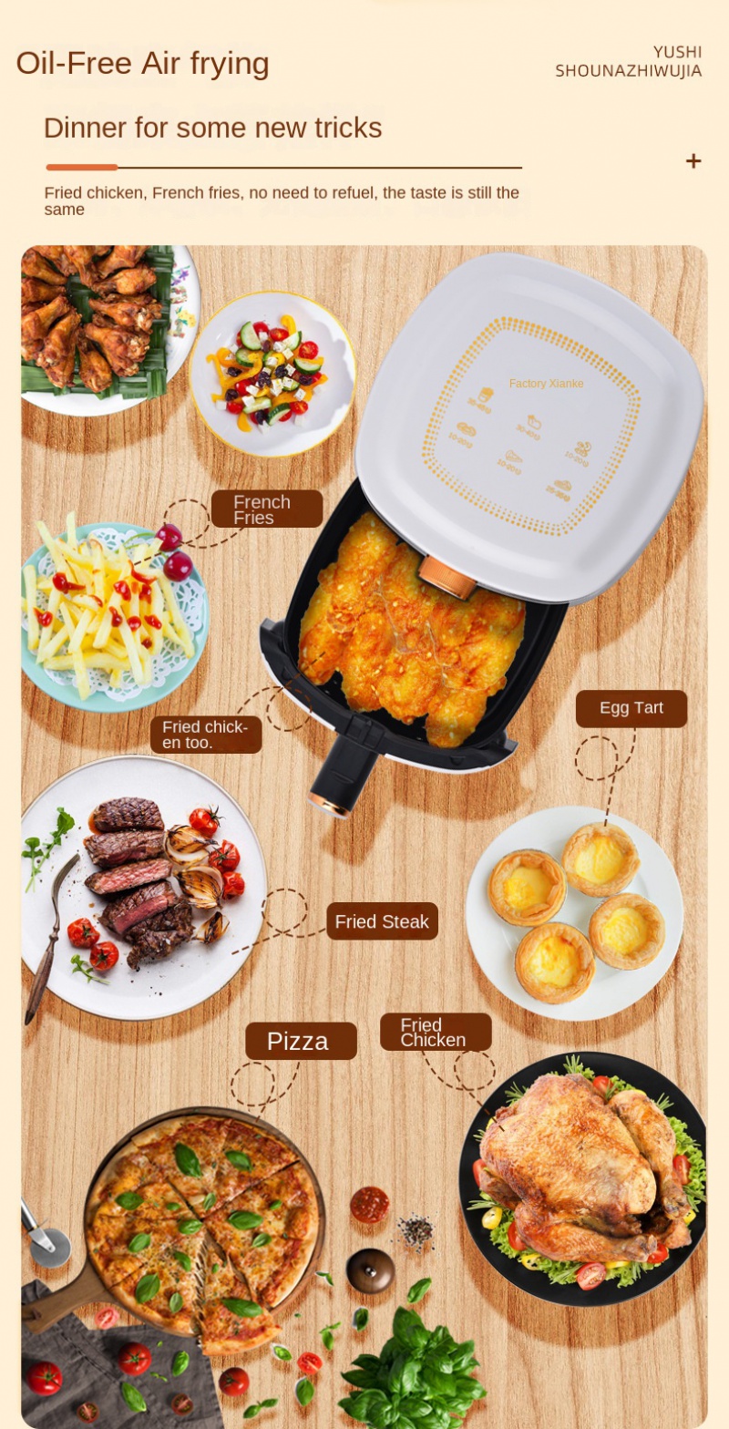 Multifunctional Air Fryer Fully Automatic Air Fryer Large Capacity Fryer Non-Stick Pan Mechanical Electric Oven French Fries Fried Chicken Nuggets Kitchen Appliances