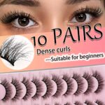 Natural Look False Eyelashes Fluffy Eyelashes Manga Anime Eyelashes Natural Look Elegant Fluffy 3D Volume Eyelashes Korean Japanese Asian Cosplay Eyelashes Suitable for Daily Dating, Going Out, Dance, Party, Travel, Reusable, Suitable for B